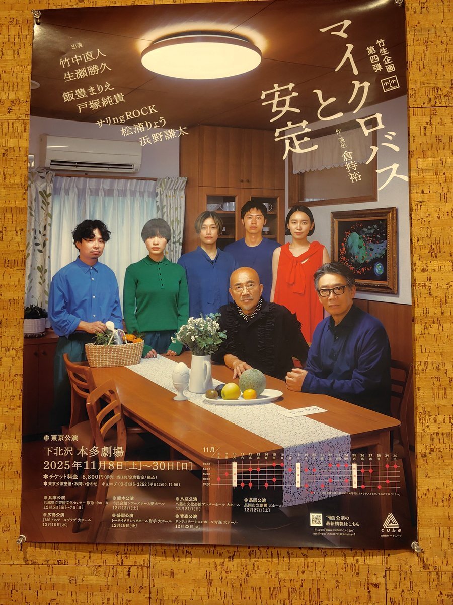 【#竹生企画 第四弾『#マイクロバスと安定』 】 本日11/19(水)14:00開演、当日券ございます! #本多劇場 にお越しくださいませ。 x.com/cube_stage/sta…