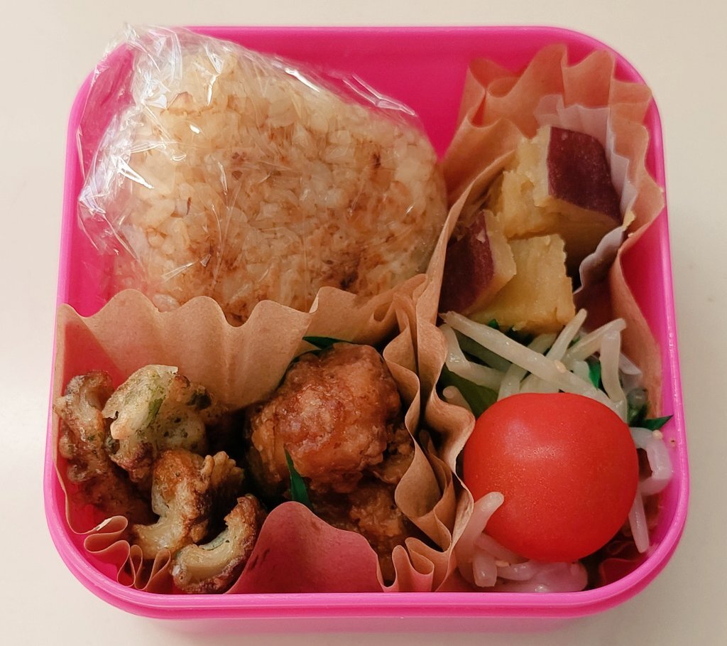 10/17(金) #おべんとう 次女定期考査最終日📝 次女の誕生日🎉 とうとう成人 そんなこともあり、#簡単弁当 だけどおかず種類多めで次女の好きな品を詰めた #焼きおにぎり #竹輪磯辺揚げ #鶏の唐揚げ #ナムル #さつまいもの煮物 成人して色々な責任がかかる けどまだ学生 難しいところだな pic.x.com/9JrkXapqcu