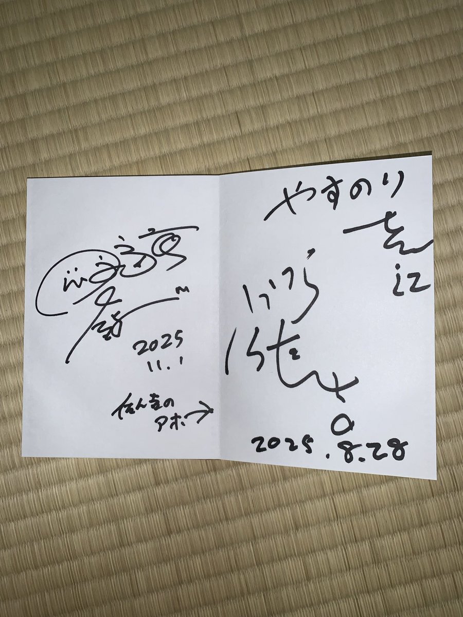 一日目は鉄瓶さんの独演会へ❗️ サインと写真も快く受けていただけました。 鉄瓶さんありがとうございました。🙇🏻 佐ん吉さんの隣にサイン✍️ イタズラ書きも入ってま〜す。😁 #笑福亭鉄瓶独演会 #桂佐ん吉 #コロラジ #繁昌亭 pic.x.com/m0yqKISJwZ
