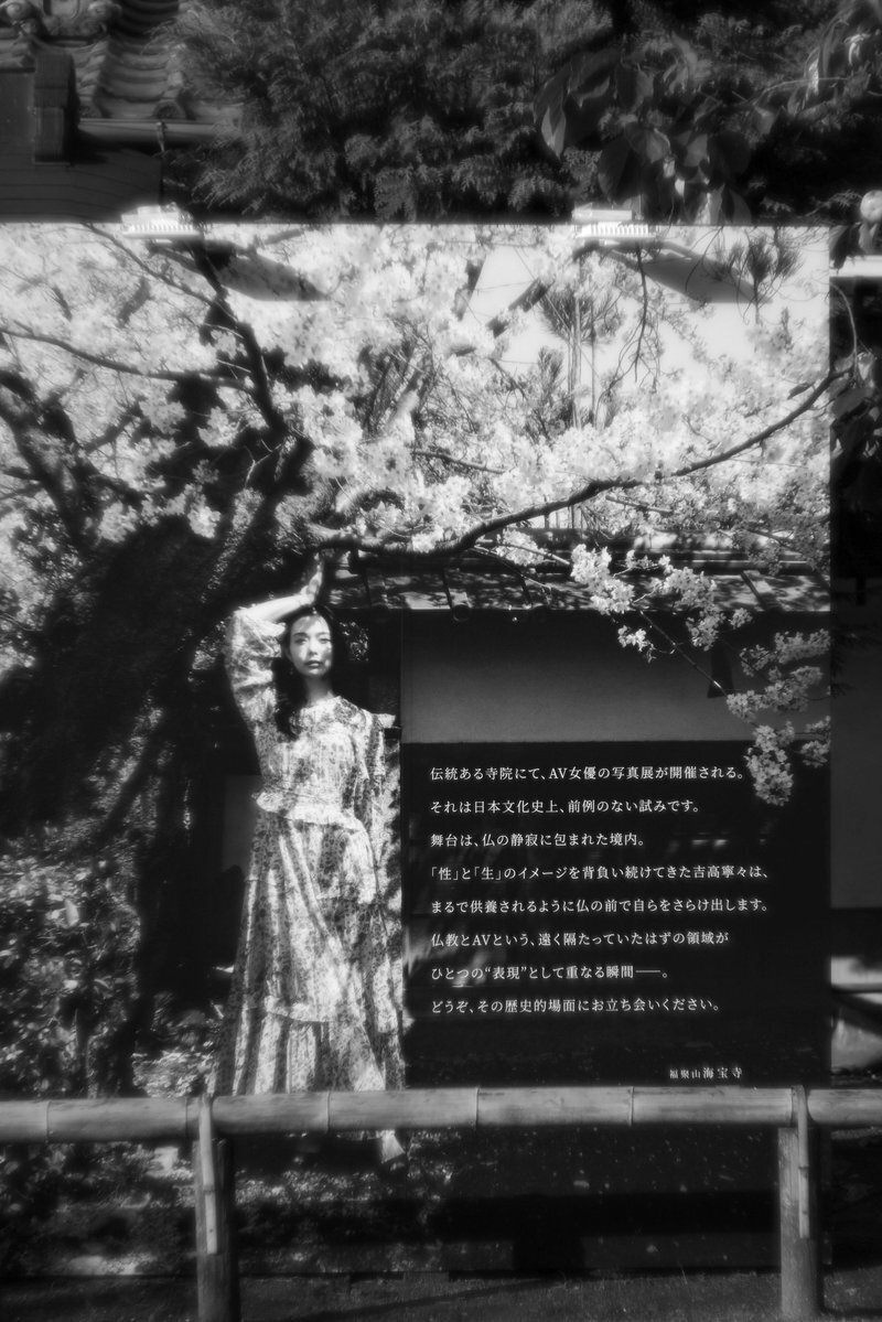 海宝寺での AV女優 #吉高寧々 さんの 写真展 * 山門の寺号看板が 「寧寧密会海宝寺」と なってることに驚く 寧々さんの作品を配置した参道をゆくと本堂 * #笠井爾示 さんが海宝寺で撮り下ろした吉高寧々さんのヌード 作品が展示される ボクは 庭園に展示された 2作品に心打たれしばし縁側に佇んでいた pic.x.com/GoDLjDYI7C