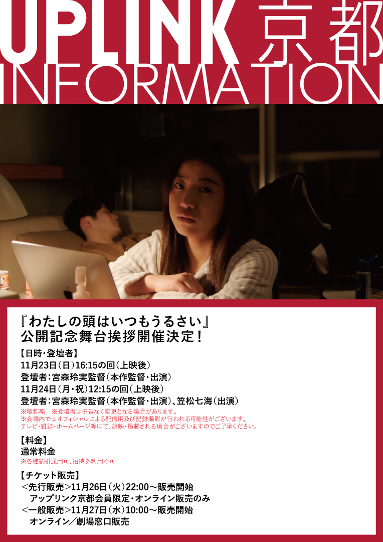 『わたしの頭はいつもうるさい』 【関西上映イベント情報】 🗓️ 11/24月祝 京都/アップリンク京都@uplink_kyoto 12:15の回上映後 大阪/シアターセブン@juso_theater7 15:15の回上映後 本作監督主演の宮森玲実とゆうこ役笠松七海の上映後舞台挨拶を行います。久々の二人トークです!