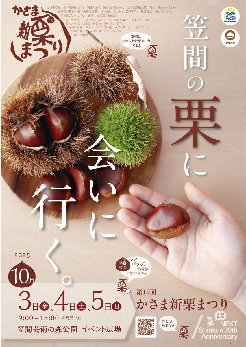📢#かさま新栗まつり 開催!🌰 #笠間市 特産「#栗」づくしの三日間✨ 笠間 #栗グルメ や #栗スイーツ が各地から集結します💪栗にちなんだ体験、ステージイベントも勢ぞろい‼️ #栗 好きの皆さま、ぜひご参加ください🏃💨 🔗city.kasama.lg.jp/page/page01647… 📅10/3㈮~10/5㈰ ※荒天中止 📍#笠間芸術の森公園