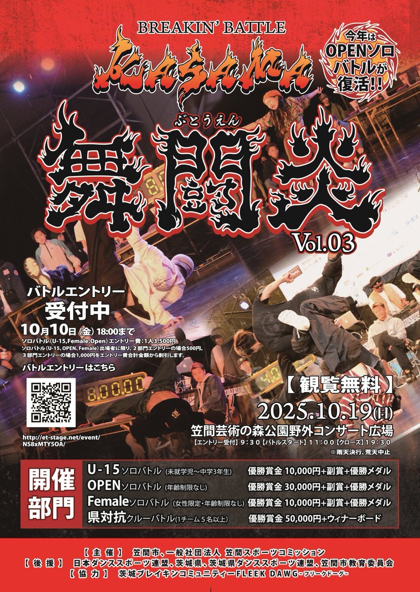 \観戦無料・どなたでも大歓迎/ BREAKIN’ BATTLE KASAMA #舞闘炎(ぶとうえん)Vol.03は、ダンスShowも見どころです👀 #キッチンカー があるので、おいしいものを食べながら楽しめます🙌 kasama-sc.jp/page/page00015… #茨城 #笠間 #笠間SC #ブレイキン #ダンス #大会 #笠間芸術の森公園