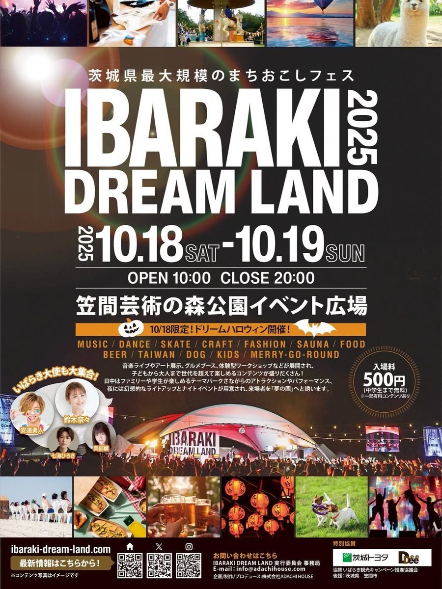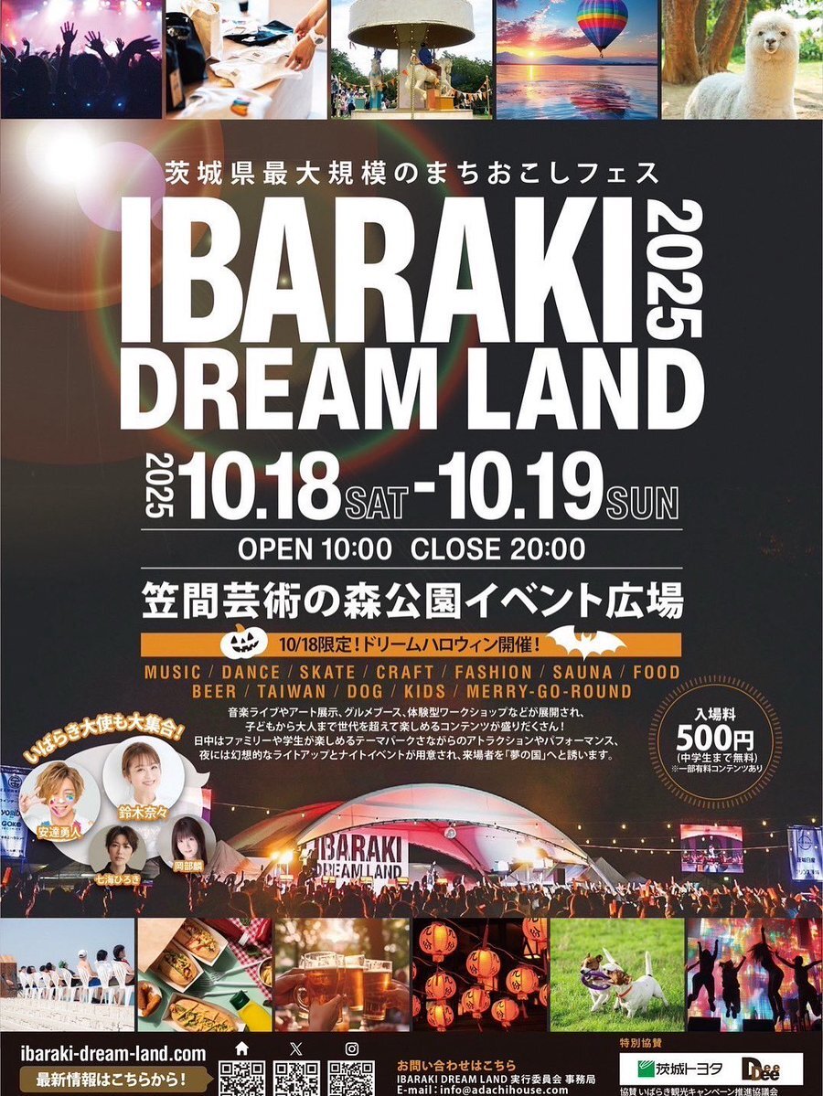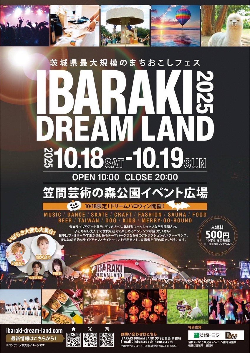 //IBARAKI DREAM LAND2025\\ 2025年10月18日(土)~19日(日)10:00~20:00 笠間芸術の森公園イベント広場にて開催! 今年はJR友部駅から二日間専用シャトルバスも運行決定‼️🚌🎉 詳しくはオフィシャルサイトを随時CHECK!! ibaraki-dream-land.com #イバラキドリームランド