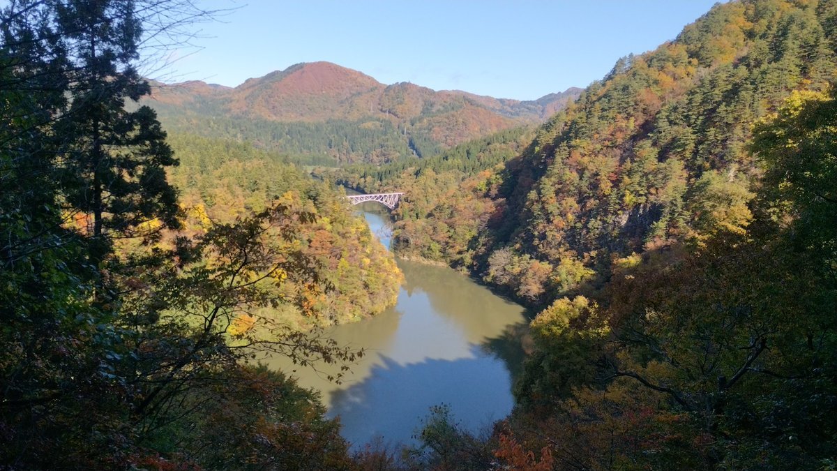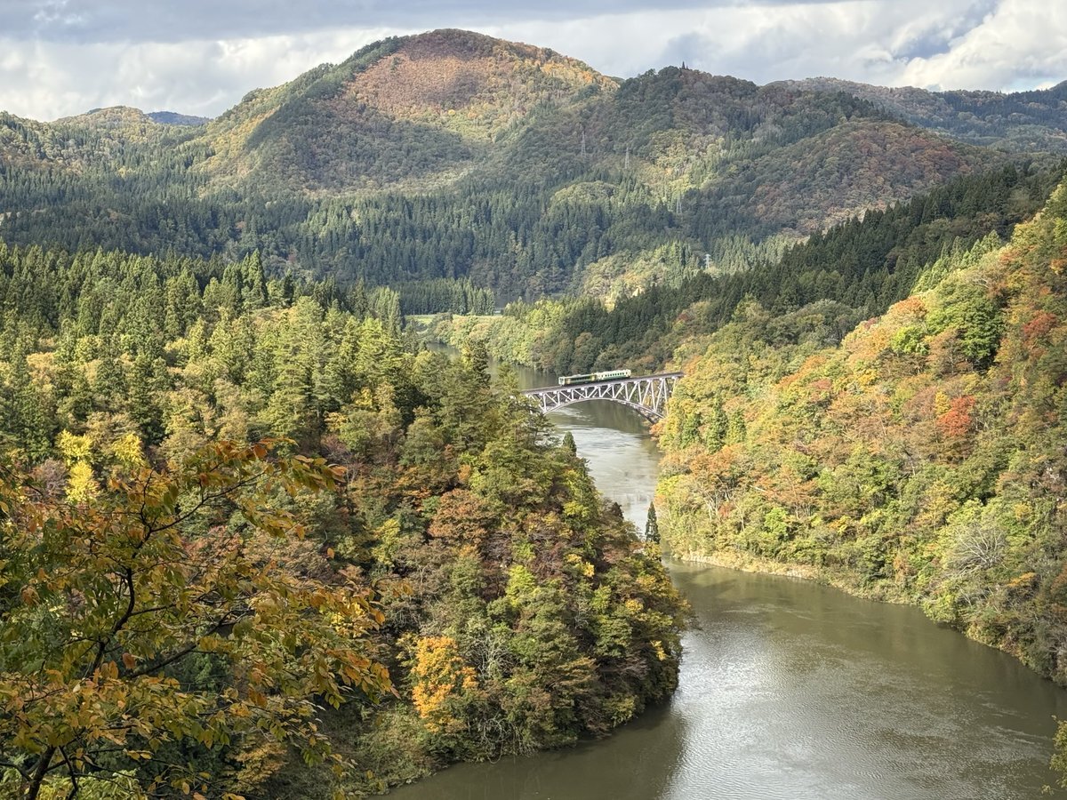 念願の第一只見川橋梁と紅葉の絶景🚃🍁熊目撃情報ありのため一番下のビューポイントより先は通行止めでした😅列車も紅葉色で良かったです🎵 #三島町 #第一只見川橋梁 #只見線 #鉄道 #紅葉 #奥会津 #道の駅尾瀬街道みしま宿 #fukushima pic.x.com/moY82eoHW2