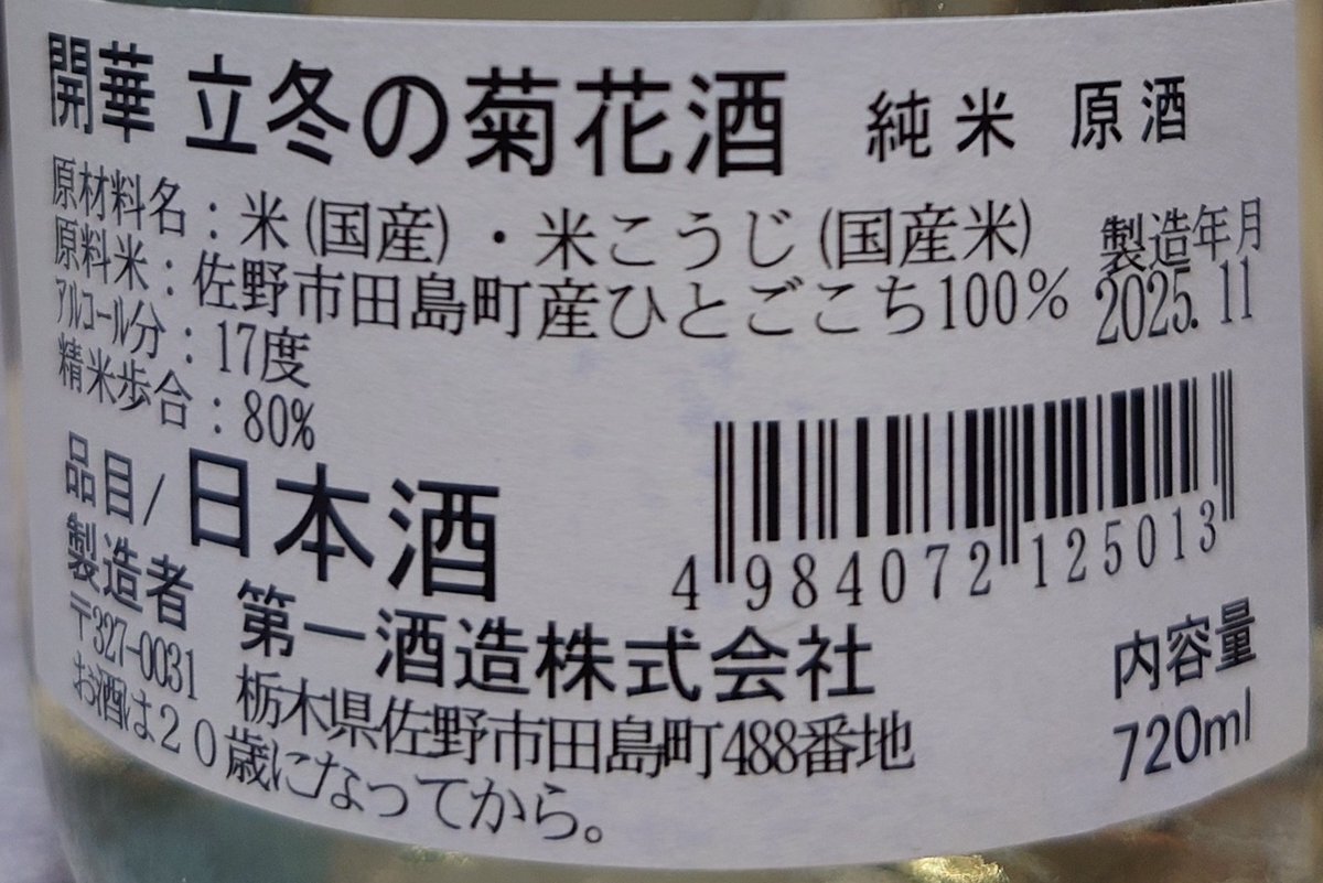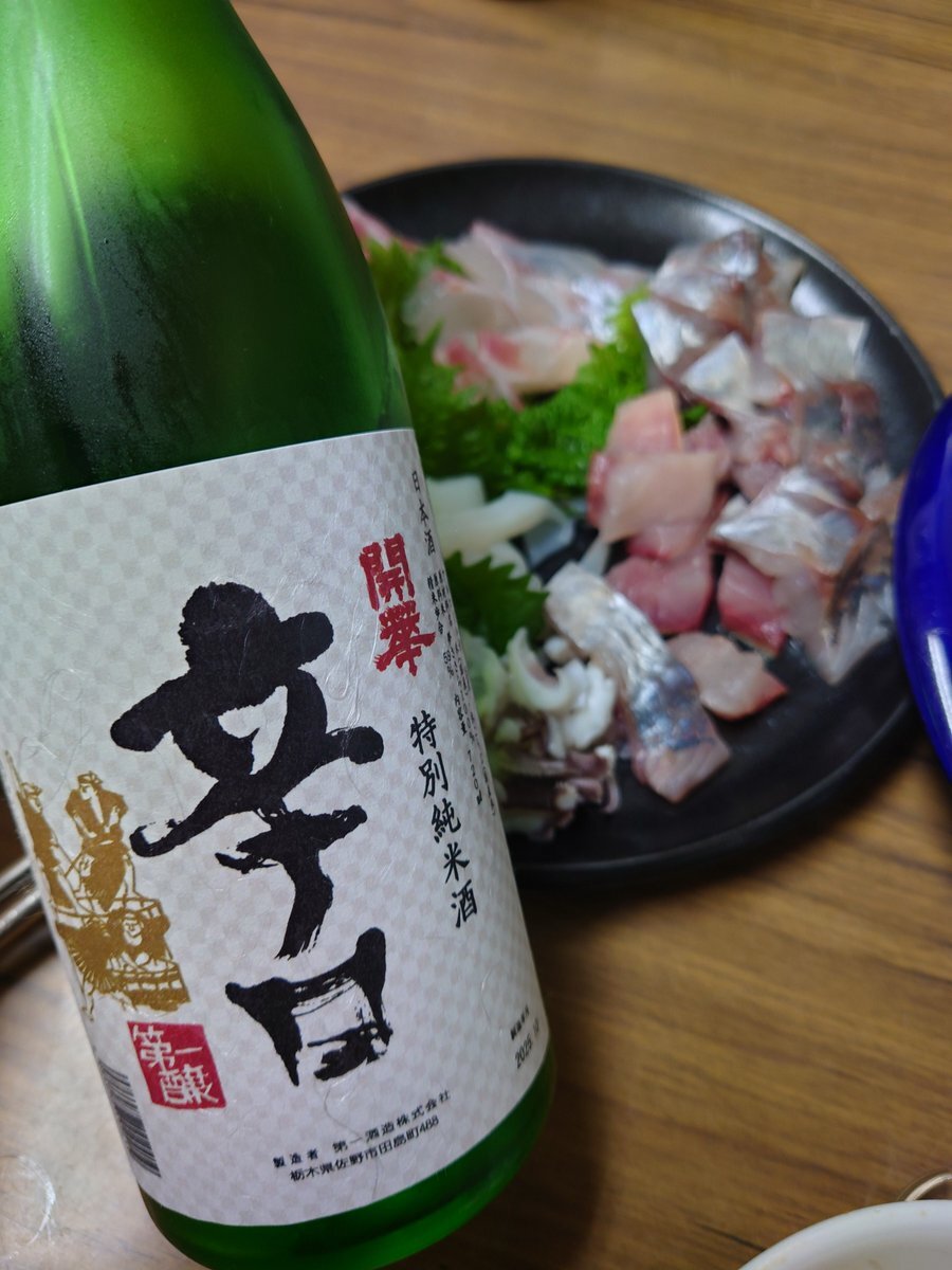 第一酒造さんの開華特別純米酒辛口、世界で一番うまい酒かもしれん、売ってる間にまた佐野行かなきゃ