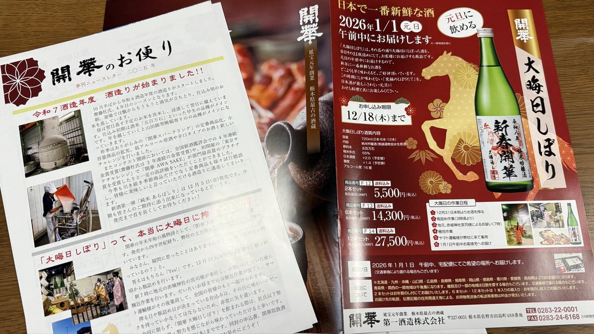 コチラからも季節のお便りが届きましてね、予約が始まりました… 🎍大晦日しぼり【新春開華】🎍 皆さんご存知の「立春朝搾り」は、この開華さんが先駆け(第一号)です! そんな(ドMな)第一酒造さんは、さらにすごい「大晦日しぼり」なんてのをやってます。 元旦に届くんですよ…!? #第一酒造 #開華