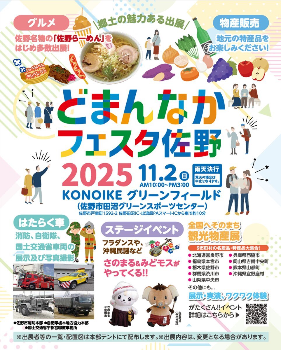 \ 📣3連休のイベント情報🎉 / 11/2(日) 10:00〜 🎈どまんなかフェスタ佐野2025🎈 #さのまる も遊びに行くよー🙌 出演時間は10:30〜の予定です🐶 みんなも遊びに来てねー😉♬ 📍KONOIKEグリーンフィールド #佐野市