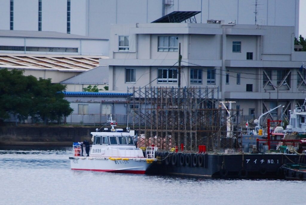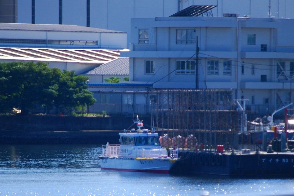 #愛知県警 #港警察署 ② #警備艇 #愛5にっこう テロ訓では海保巡視艇と一緒に仮想的を猛追していた。 某造船所を出渠したハズだが… その奥で船尾をチラ見させているのは #第四管区海上保安本部 水路…じゃなかった #海洋情報部 の #測量船 #HS25いせしお pic.x.com/aNMrYiBBLq