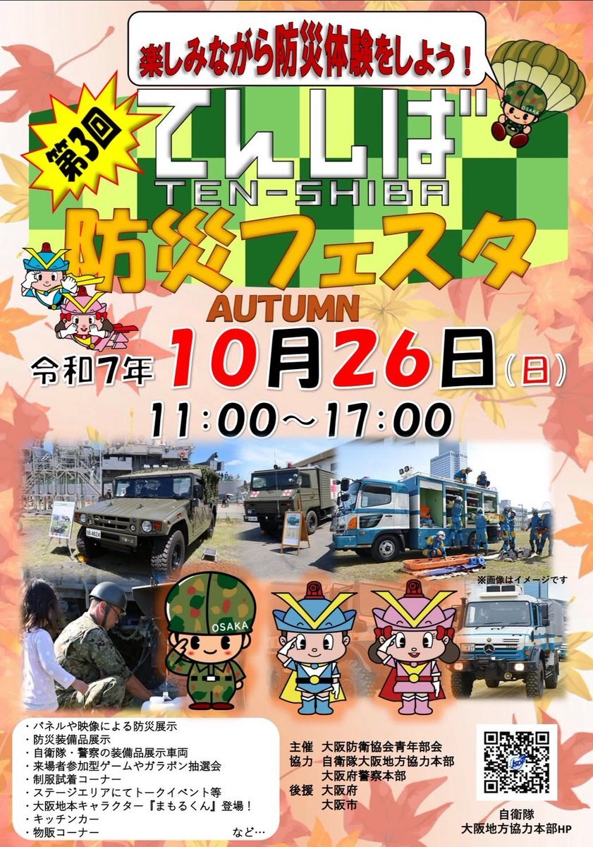 令和7年10月26日(日)1100~1700で「第3回てんしば防災フェスタ」が行われます。31/2t水タンク車及び11/2t救急車(通称:アンビ)を展示しますので、ぜひお越しください。 #第3後方支援連隊 #千僧駐屯地 #装備品展示 #てんしば #防災 pic.x.com/bitF8RbW57