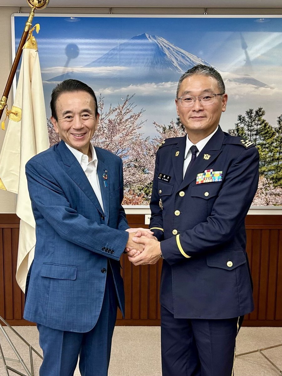この度 #連隊長 鈴木1佐は着任挨拶のため #静岡県鈴木知事 を表敬しました。 静岡県を担当隊区とする #第34普通科連隊 は、引き続き県との連携強化を図りつつ地域とともに県民の皆様の安心・安全のため任務に邁進します。 #板妻駐屯地 pic.x.com/KDr1itIWLe