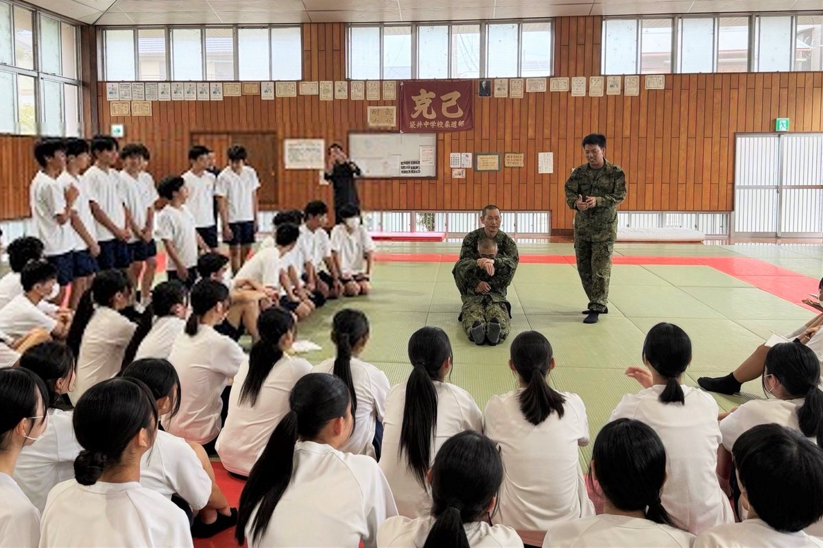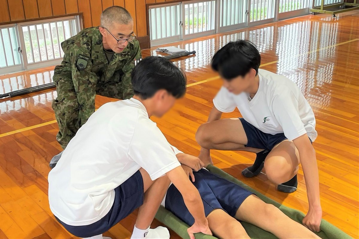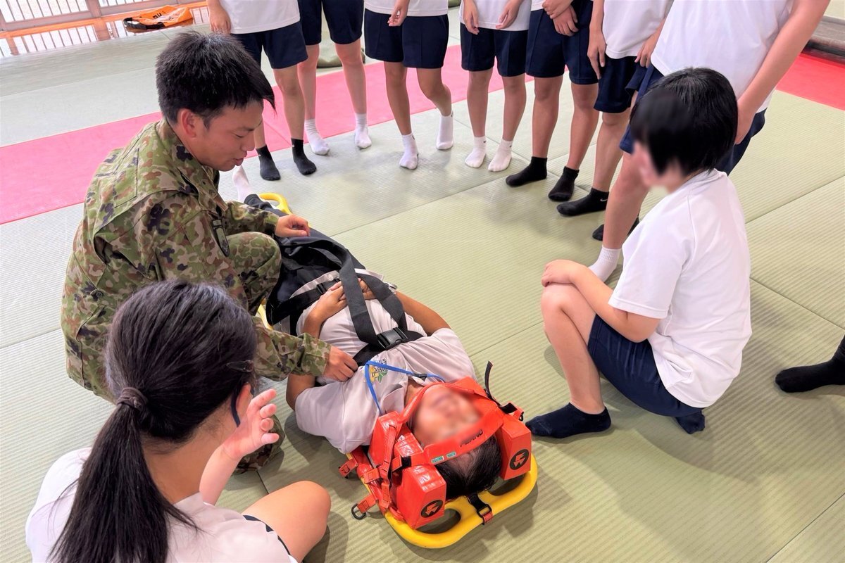 #第34普通科連隊 は、袋井市の中学校で行われた #防災イベント に参加しました。 #衛生小隊 が生徒たちを対象に負傷者の救護・搬送について展示した後、生徒たちによる実習を行い、防災意識の高揚に寄与するとともに、自衛隊の活動に対する理解の促進を図りました。 #板妻駐屯地 #34i pic.x.com/0EZwh8Npk9