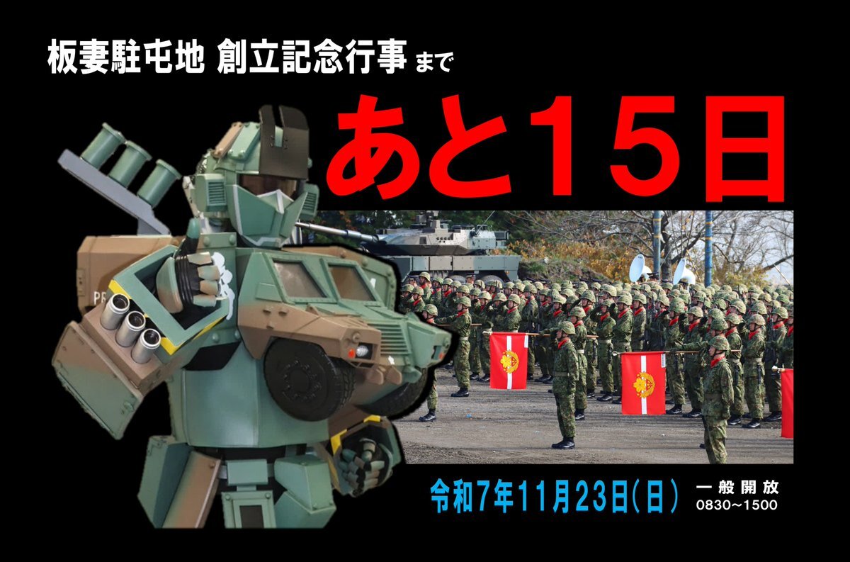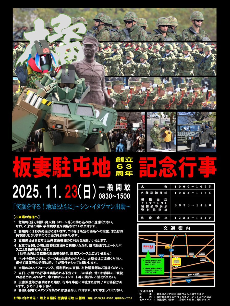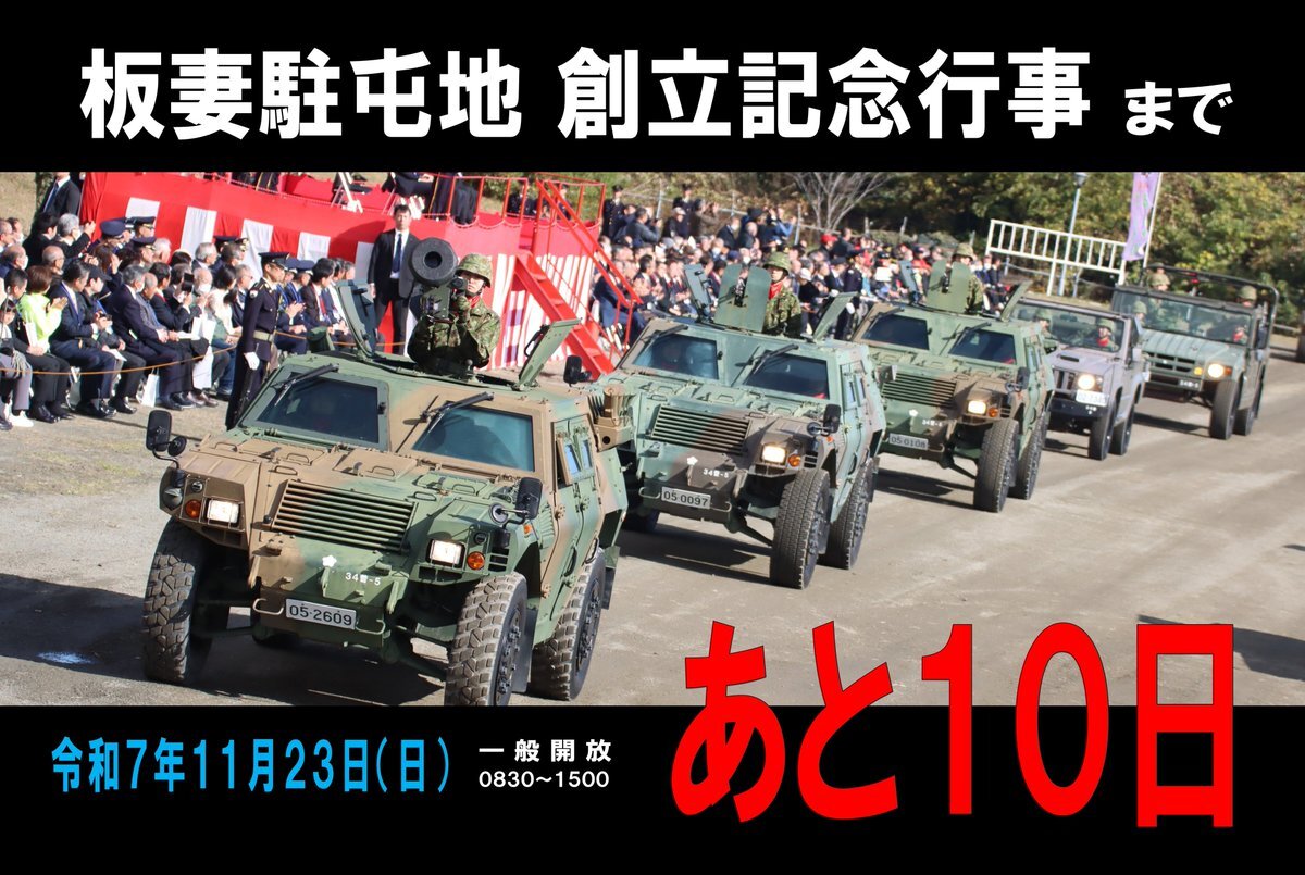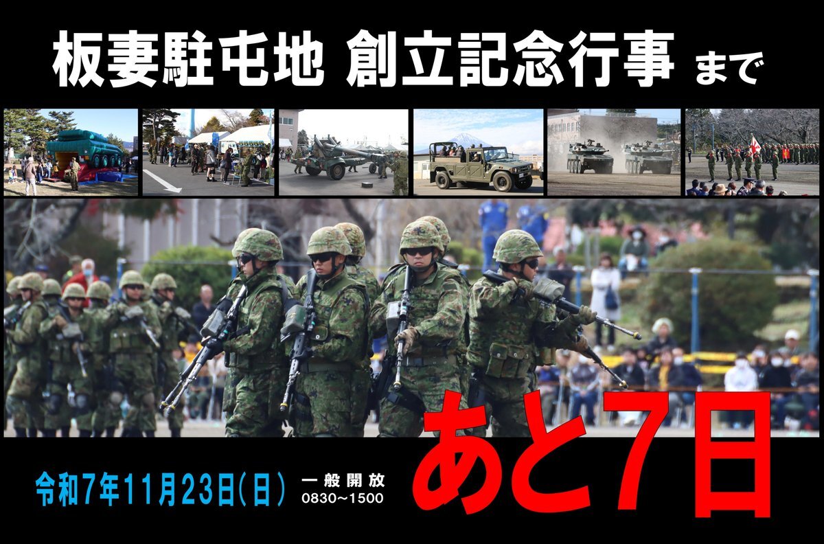 板妻駐屯地創立63周年記念行事は 11月23日(日)開催です! #記念行事 #板妻駐屯地 #第34普通科連隊 #第3陸曹教育隊 #3曹教 #イタヅマン pic.x.com/tOBPeLMiNa