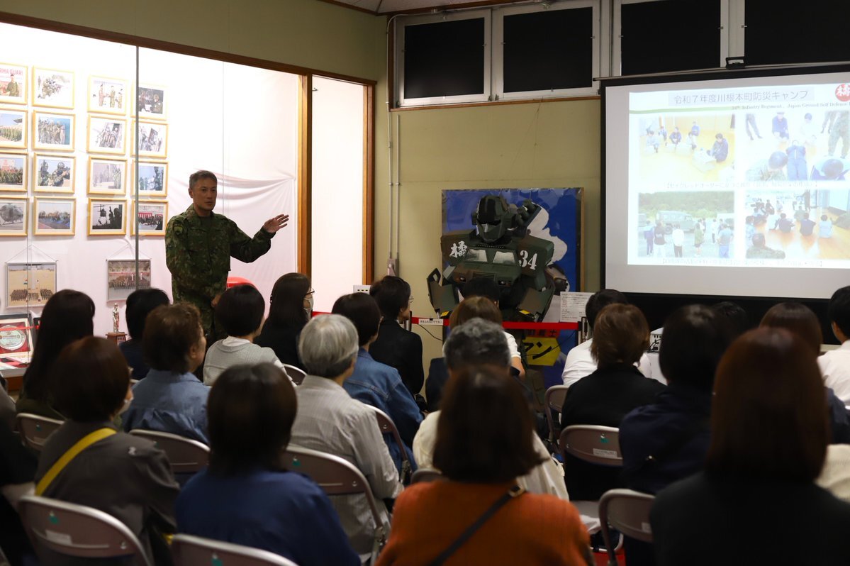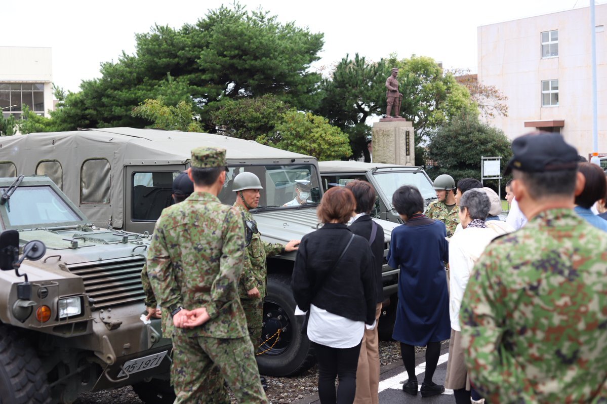 #川根本町 商工会の女性部が #板妻駐屯地 を研修に訪れました。 #第34普通科連隊 が保有する車両等の装備品の研修、過去の災害派遣について中隊長が説明を行い、自衛隊の活動について理解と認識を深めていただきました。 pic.x.com/RtvhXdSwvO