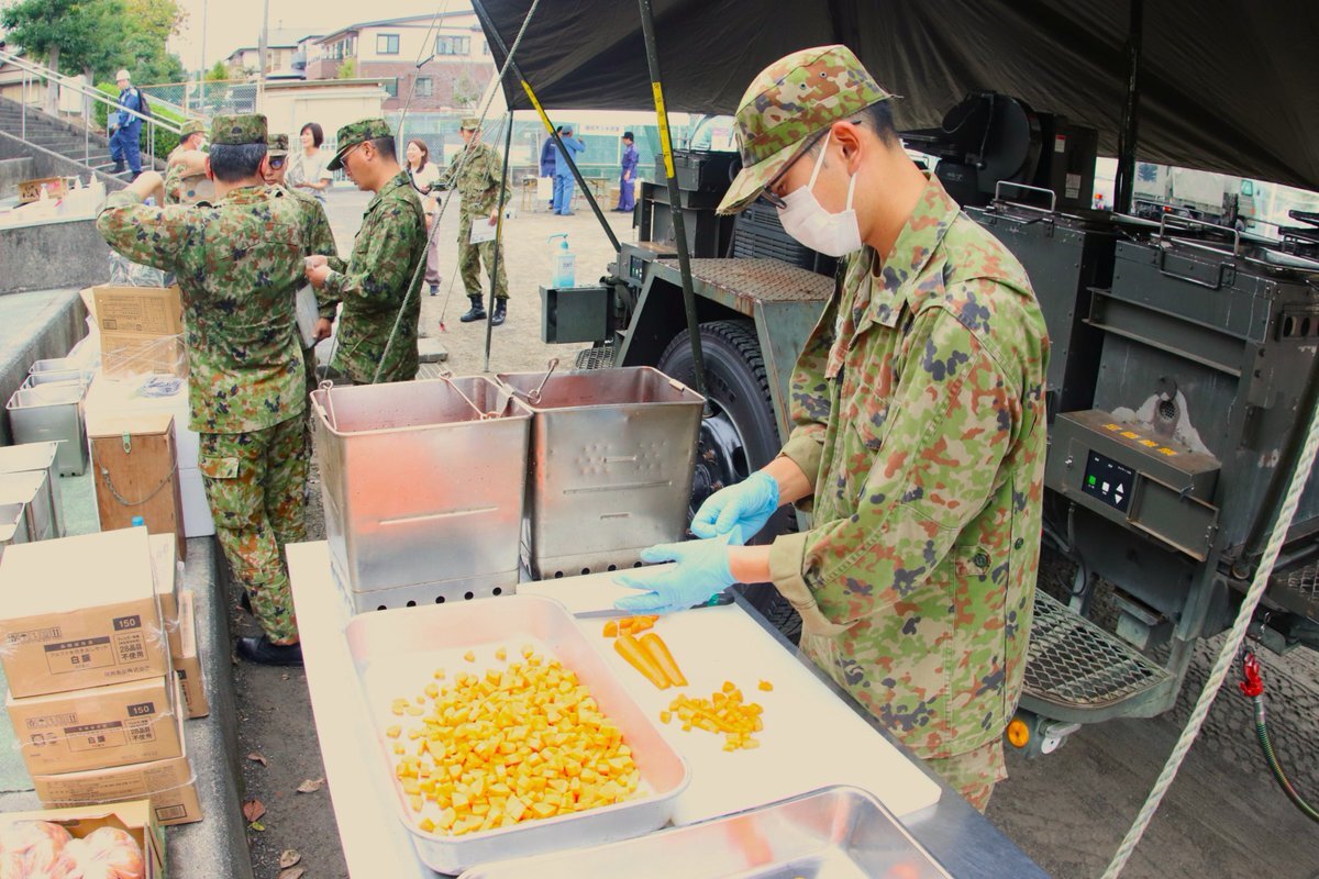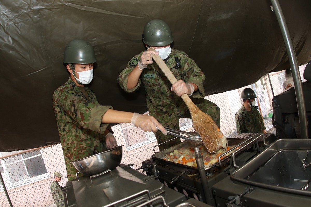 #第34普通科連隊 の第2中隊が炊事練成訓練を行いました。この日は昼食の時間に合わせてカレーを主食としたメニューを調理し、炊事要員となった隊員は炊事班長の指揮の下、献立表に基づき示された時期に部隊に提供し #野外炊事能力 の向上を図りました。 #板妻駐屯地  #34i pic.x.com/Df17LFtygm