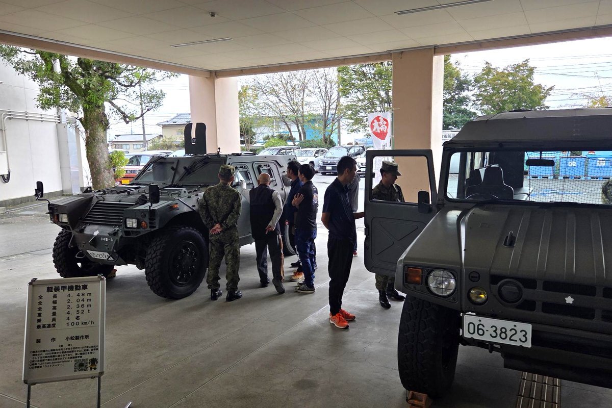 #第34普通科連隊 は、富士宮市において中学校教職員の方々に対する車両等の装備品展示・説明を行い、募集広報をはじめ自衛隊に対する一層の理解促進を図りました。 #板妻駐屯地 #高機動車 #軽装甲機動車 #偵察用オートバイ pic.x.com/52m6ij3NBA