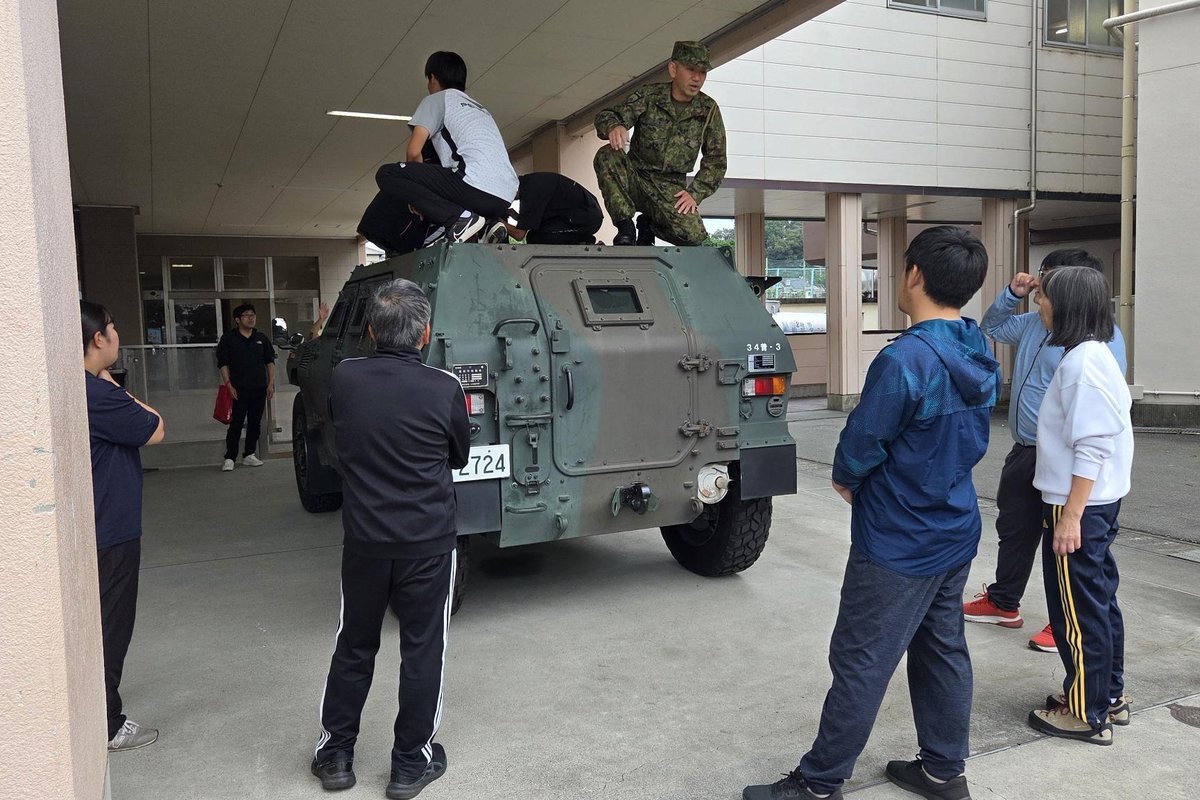 #第34普通科連隊 は静岡市の高校で行われた文化祭を支援しました。各種車両、救急法の展示・説明、体験乗車を行い、文化祭を盛り上げるとともに、募集広報をはじめ自衛隊に対する理解促進を図りました。 #板妻駐屯地 #34i pic.x.com/fOSjX2xOaV