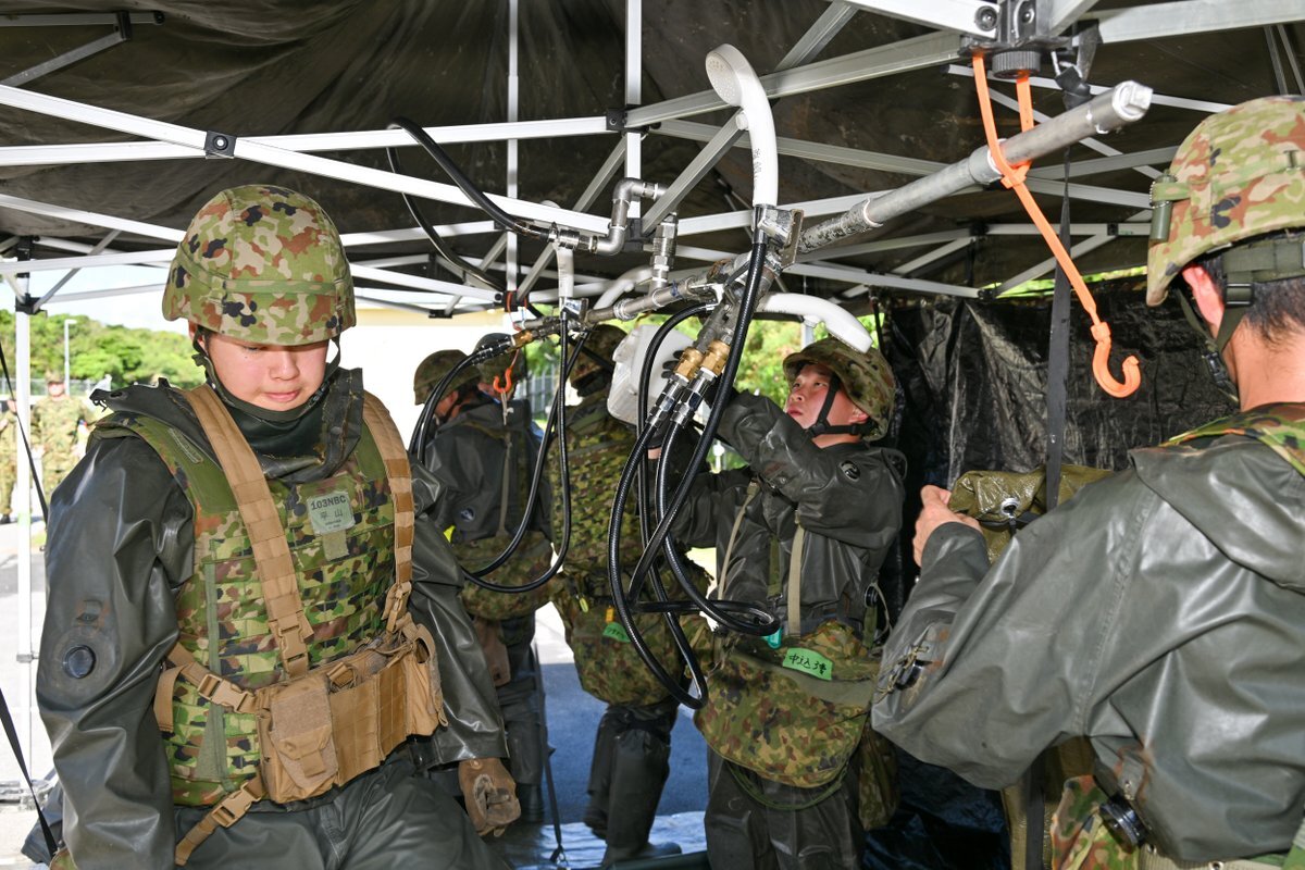 【07JX(CBRN対処訓練に伴う司令官現地指導①)】 #陸上総隊 は、令和7年度自衛隊統合演習( #07JX )に参加しています。 10月25日、小林陸上総隊司令官は沖縄県において #中央特殊武器防護隊#対特殊武器衛生隊 と、 #第7地対艦ミサイル連隊 との協同による #CBRN pic.x.com/zM62oakAqL