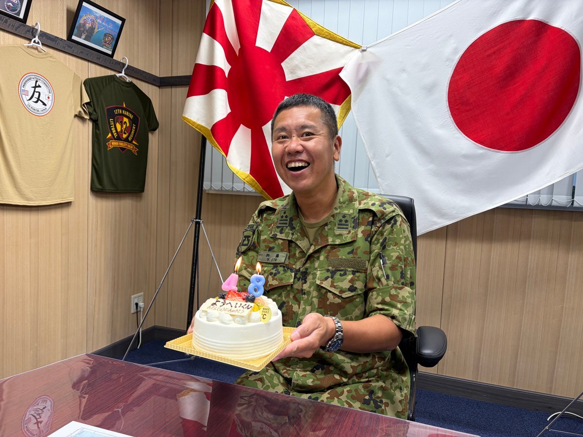 ハイサイ!先日は我らが井藤連隊長のお誕生日でした! 仕事終わりにサプライズでケーキをプレゼントしました!連隊長おめでとうございます! #陸上自衛隊 #自衛隊 #自衛官 #第7地対艦ミサイル連隊 #誕生日 #陸自 #ケーキ pic.x.com/yQjwbmoxcF