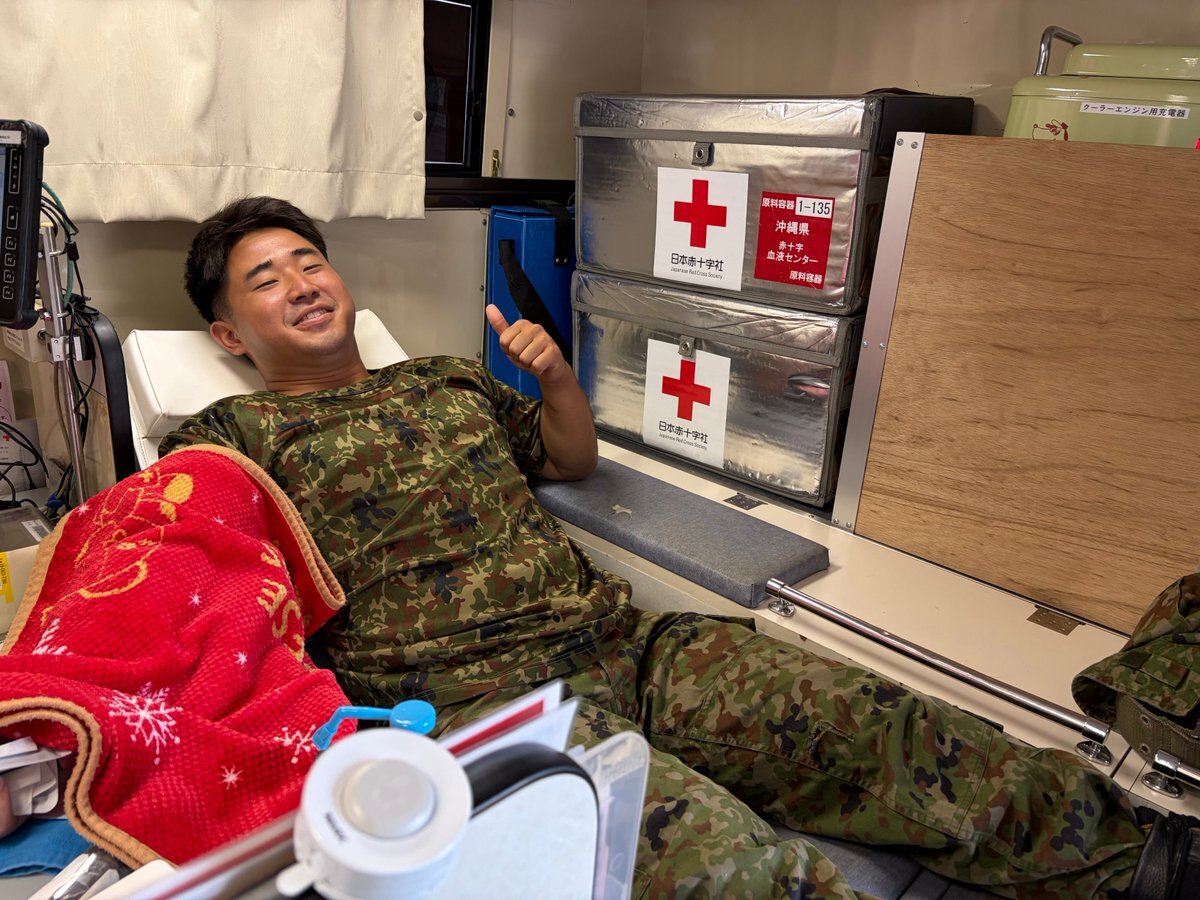 ハイサイ!10月20日 #勝連分屯地 において #献血 に協力しました!隊員たちは休憩時間や業務の合間で献血を行い、21名が献血を行いました! これからも勝連分屯地は献血に協力するサー! #陸上自衛隊 #第7地対艦ミサイル連隊 #社会貢献 #協力 #献血 pic.x.com/M2tuJ5jNxp