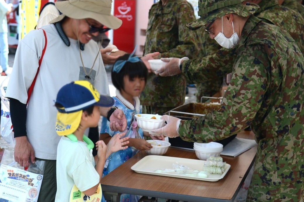 ハイサイ!#第7地対艦ミサイル連隊 はうるま市与那城防災訓練に参加しました!!防災ライフハックとして自衛隊のリュックの背負い体験、簡易担架の作成体験、土のうの作成体験、救急車の見学、カレーの食事体験等多くの来場者に体験していただきましたサー! #陸上自衛隊 #自衛隊 #自衛官 pic.x.com/7LBzDC6ThL
