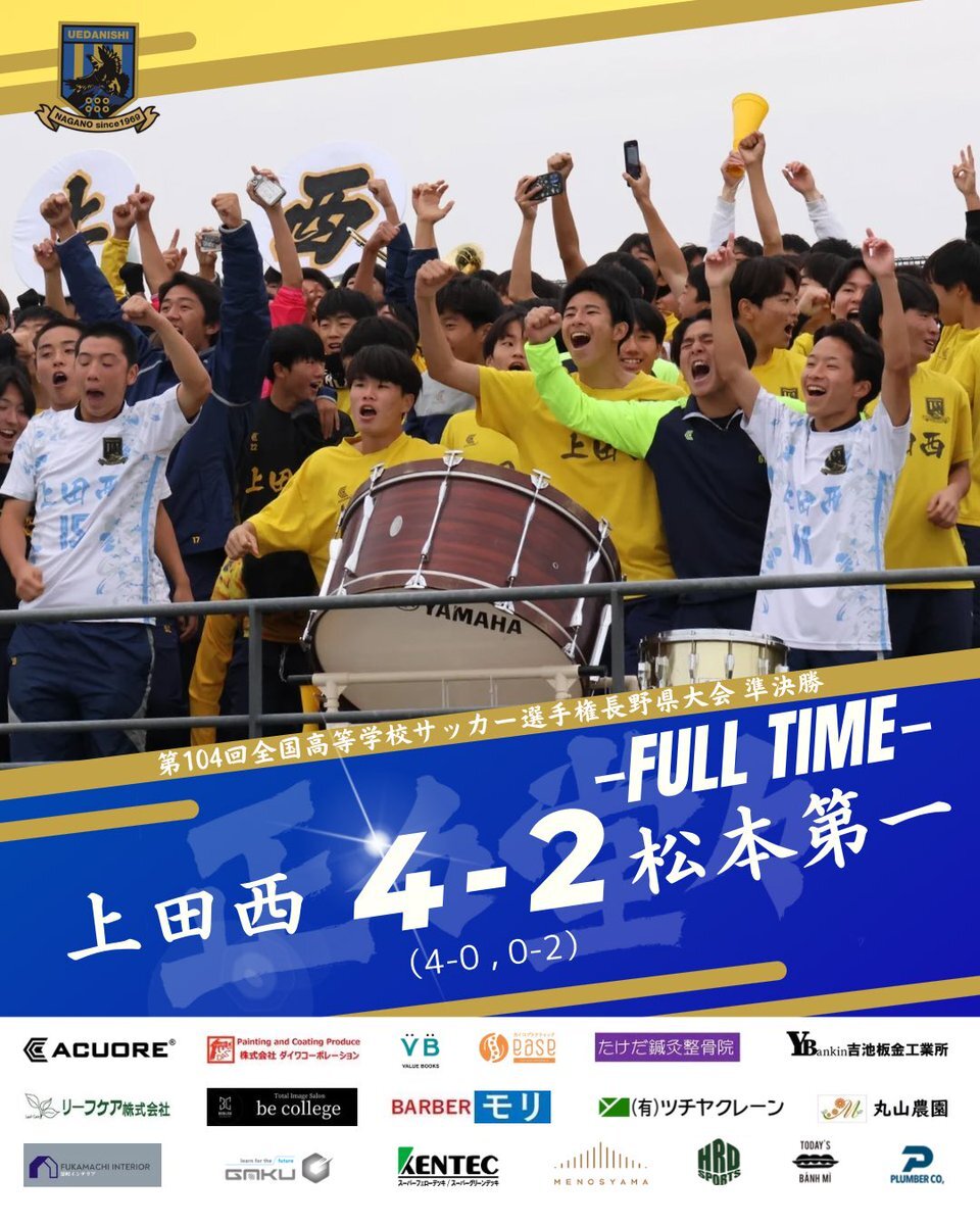 【第104回全国高等学校サッカー選手権長野県大会】 今年もサッカー部が決勝まで勝ち上がりました。勝てば連覇となります。決勝は8日(土)13時30分〜長野Uスタジアムで行われます。応援の程よろしくおねがいいたします。 #上田西 #上田西高校サッカー部 #第104回全国高等学校サッカー選手権大会 pic.x.com/S9pPRPoaWr