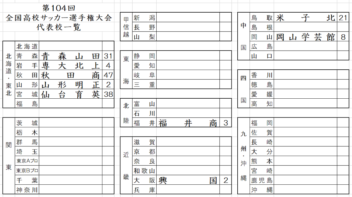 #高校サッカー⚽#選手権 #地方大会 #2025年11月1日 現在 #結果 優勝‼ #興国(大阪) #米子北(鳥取) #岡山学芸館(岡山) 👏👏👏👏~ #全国高等学校サッカー選手権大会 #代表校一覧 #第104回全国高等学校サッカー選手権大会 pic.x.com/f5b1dtj6A4