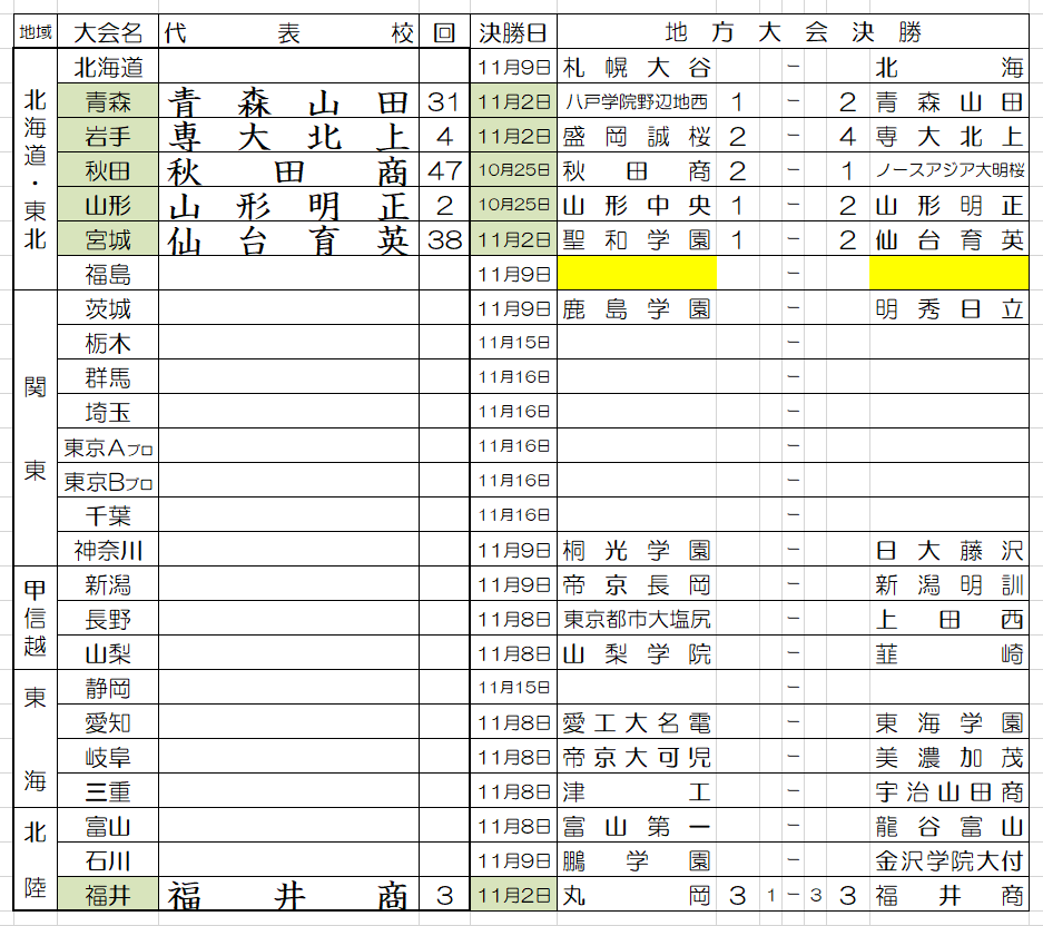 #高校サッカー⚽#選手権 #地方大会 #2025年11月2日 現在 #結果 優勝‼ #青森山田(青森) #専大北上(岩手) #仙台育英(宮城) #福井商(福井) 👏👏👏👏~ #全国高等学校サッカー選手権大会 #代表校一覧 #第104回全国高等学校サッカー選手権大会 pic.x.com/hS1H1YQBmK