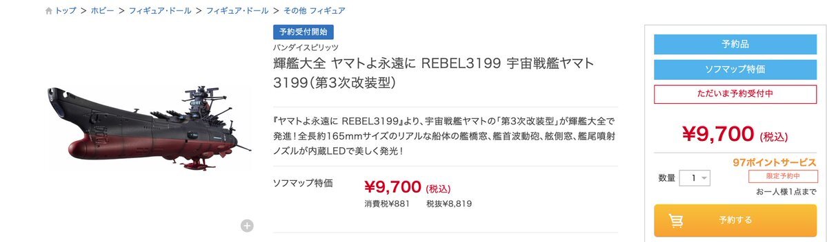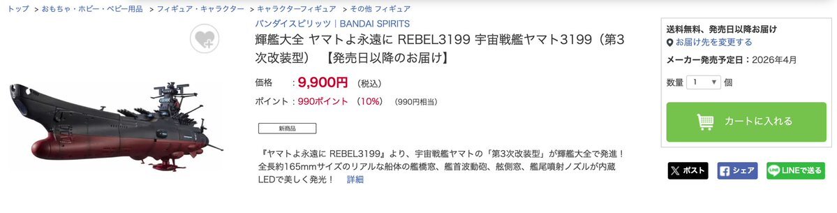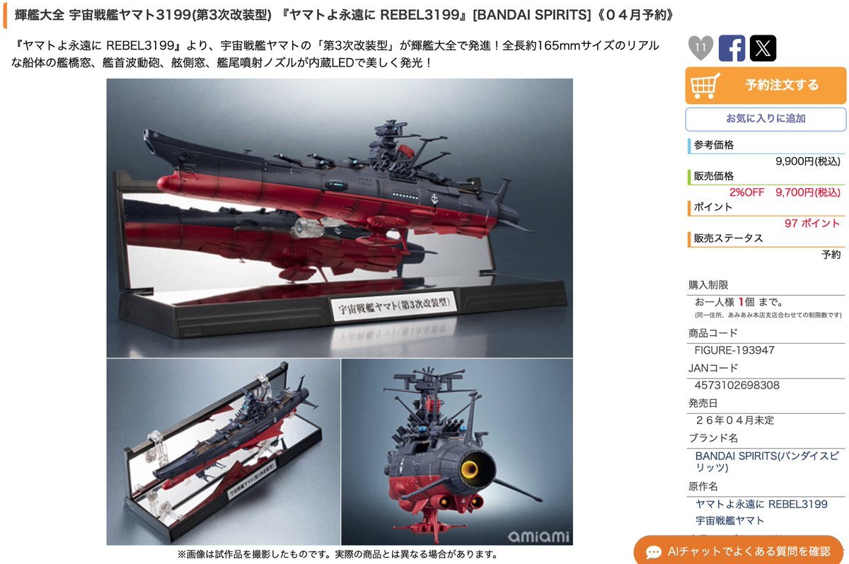TAMASHII NATIONS #輝艦大全 #ヤマトよ永遠に #REBEL3199 #宇宙戦艦ヤマト3199(#第3次改装型) 全長約165mm ABS製 #塗装済み完成品フィギュア shintyaku-yoyaku.seesaa.net/article/518872… @Amayoyakuより
