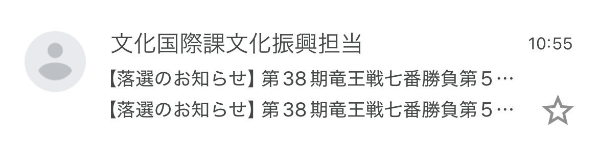 行く気満々だった姫路から前夜祭の落選メールが届いた メールを開かなくても件名と1行目がダブルで落選を伝えてくるのまーまー重い😂 #第38期竜王戦七番勝負 #第5局姫路対局 pic.x.com/vU6e2ipT8U
