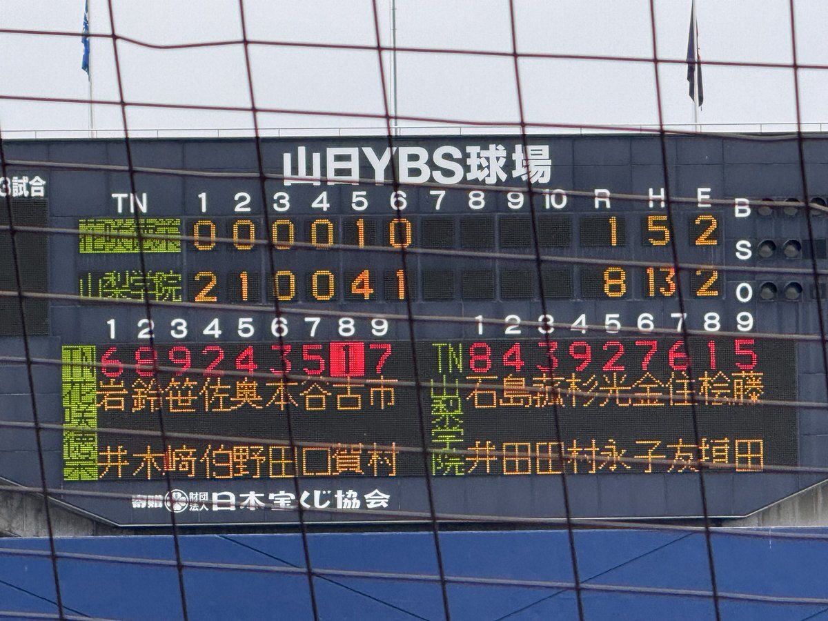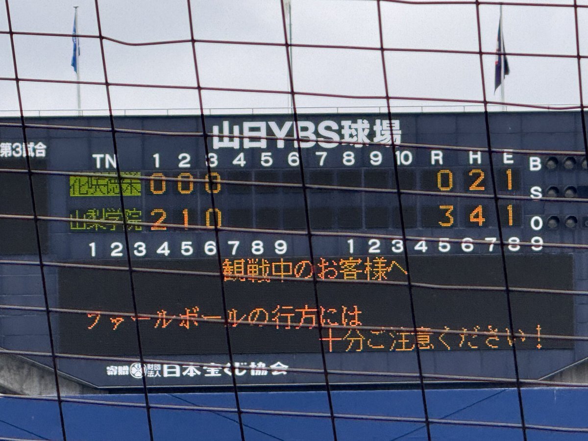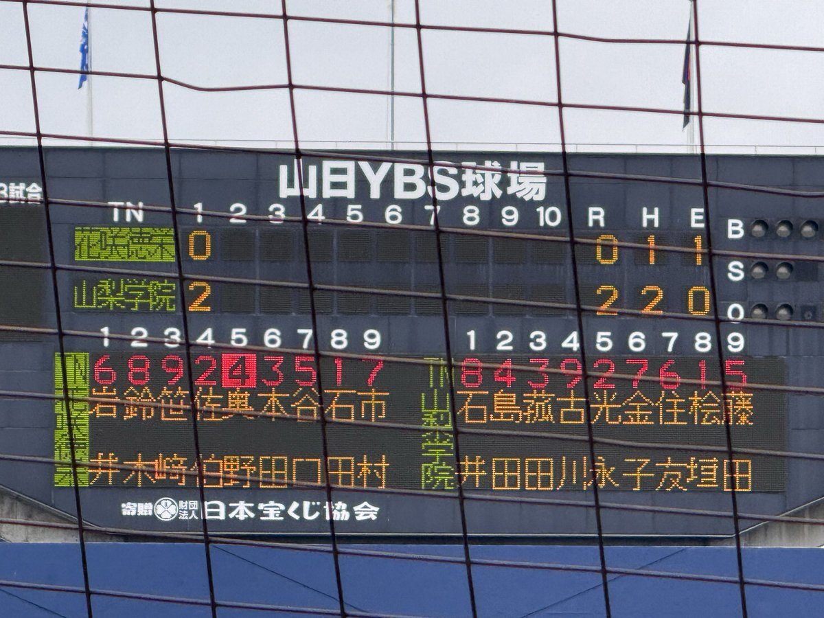 #第78回秋季関東高校野球大会 ○山日YBS球場 【決勝】 5回表終了 山梨学院(山梨1位)3ー1花咲徳栄(埼玉1位) 花咲徳栄 二死一塁から鈴木選手のレフト前ヒットと山梨学院レフトが後逸する間に走者が生還して1点を返す 山梨学院にとっては珍しい形のエラー #高校野球 #関東大会 pic.x.com/lRudUmPDQL