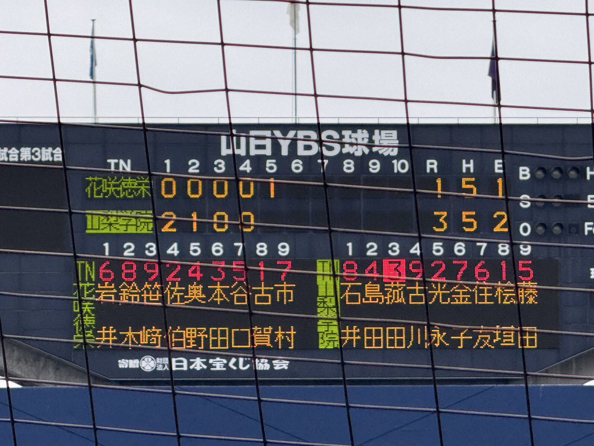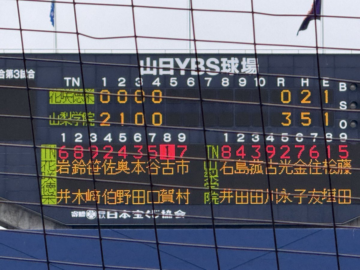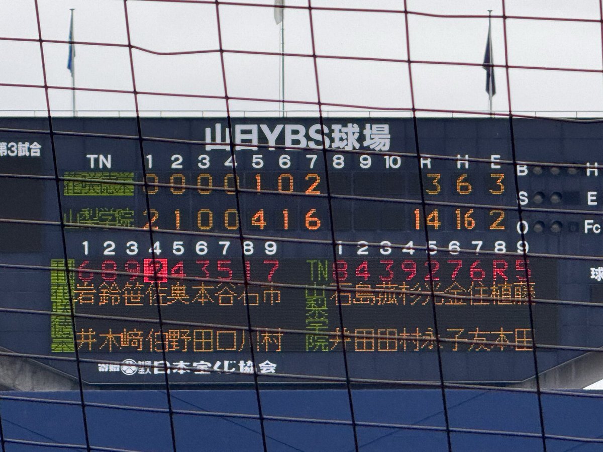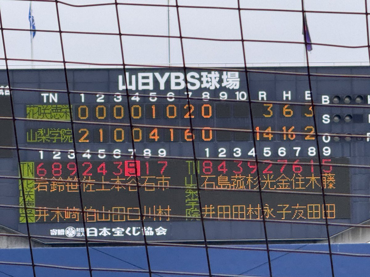 #第78回秋季関東高校野球大会 ○山日YBS球場 【決勝】 5回表終了 山梨学院(山梨1位)3ー1花咲徳栄(埼玉1位) 花咲徳栄 二死一塁から鈴木選手のレフト前ヒットと山梨学院レフトが後逸する間に走者が生還して1点を返す 山梨学院にとっては珍しい形のエラー #高校野球 #関東大会 pic.x.com/lRudUmPDQL