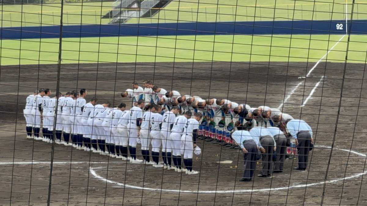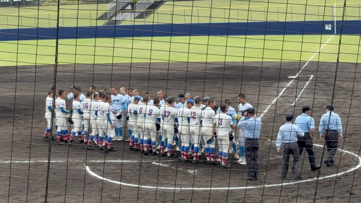 #第78回秋季関東高校野球大会 ○山日YBS球場 【決勝】 3回表終了 山梨学院(山梨1位)3ー0花咲徳栄(埼玉1位) 山梨学院・檜垣投手 この試合初の三者凡退に抑える❗️ #高校野球 #関東大会 pic.x.com/HhNx0FFxIn