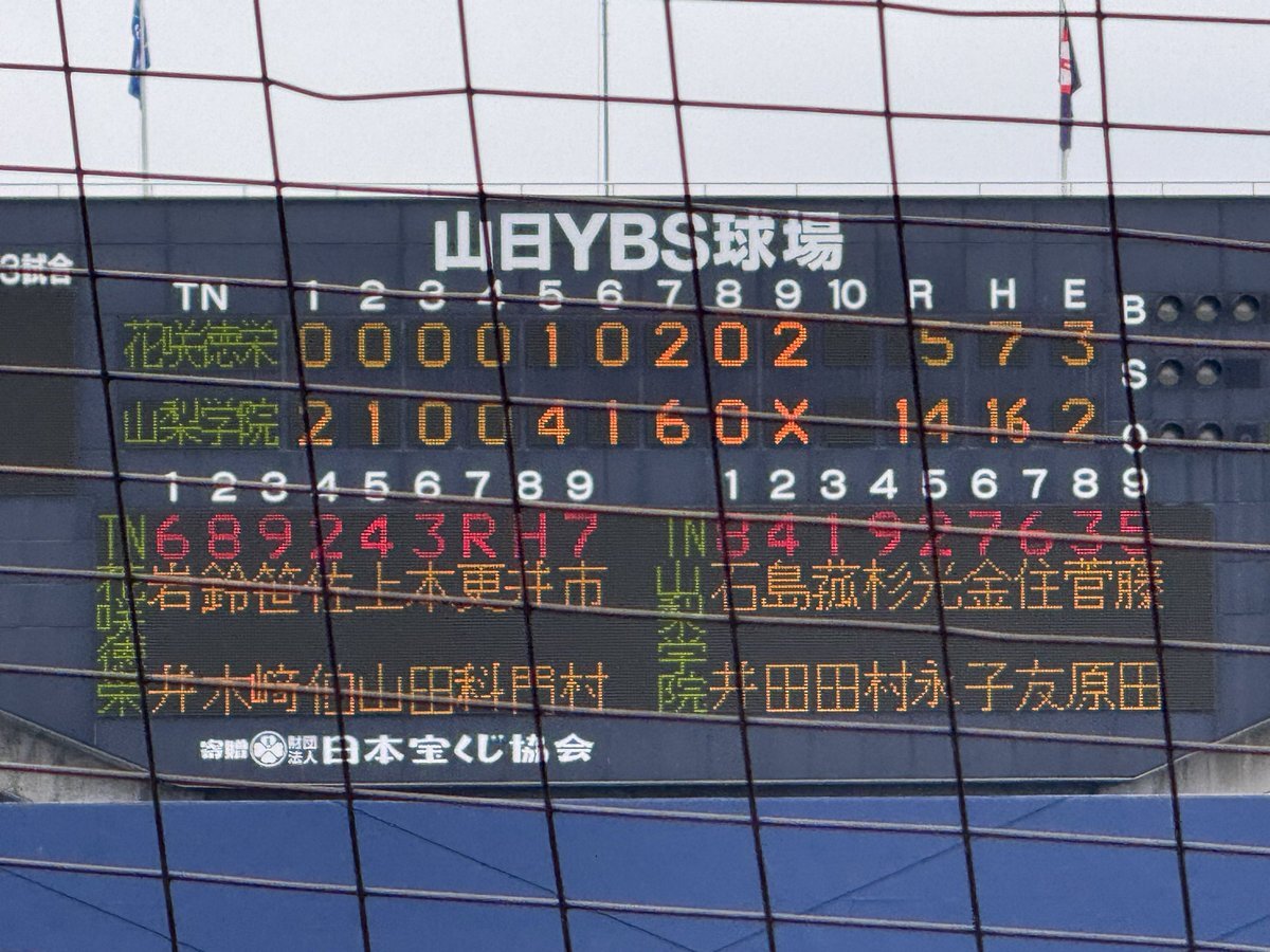 #第78回秋季関東高校野球大会 ○山日YBS球場 【決勝】 終了 山梨学院(山梨1位)14ー5花咲徳栄(埼玉1位) 山梨学院 地元開催の大会で見事に3年ぶり3回目の優勝🏆 そして神宮大会出場決定❗️ おめでとうございます🎊㊗️ ナイスゲーム👏 #高校野球 #関東大会 #山梨 #山梨学院 #俺達はチャレンジャー pic.x.com/Rl5kEx7Jt3