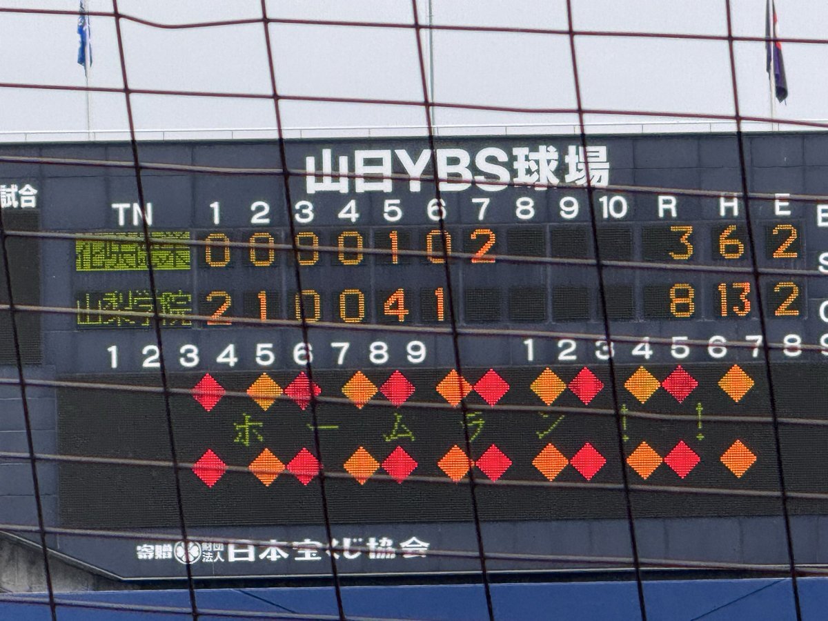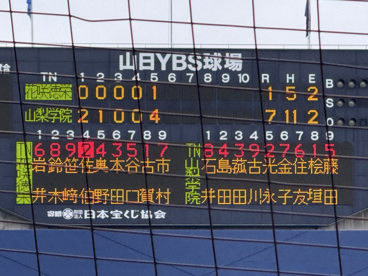 #第78回秋季関東高校野球大会 ○山日YBS球場 【決勝】 6回終了 山梨学院(山梨1位)8ー1花咲徳栄(埼玉1位) 山梨学院 光永選手に今大会初安打となるタイムリー二塁打が飛び出す❗️ 山梨学院打線が止まりません‼︎ #高校野球 #関東大会 pic.x.com/rKwdn9Kwk7