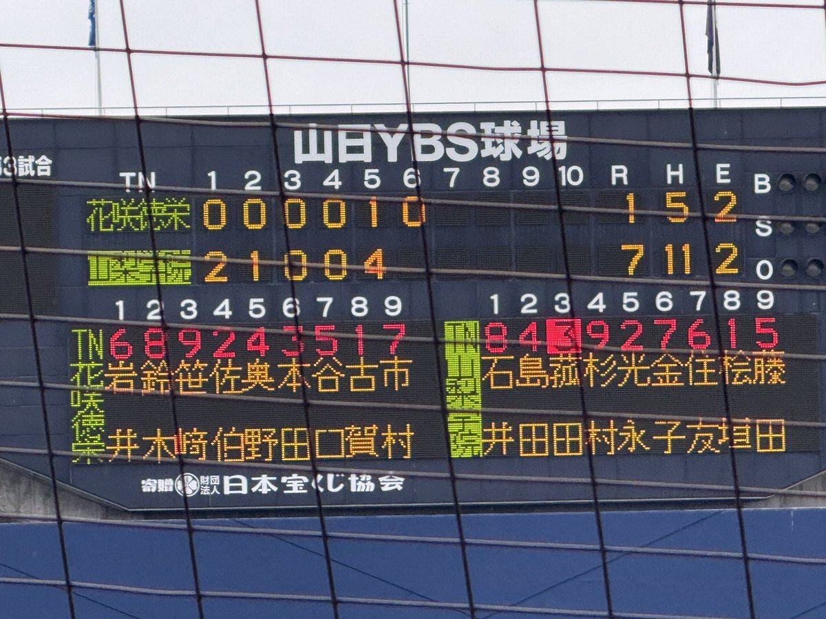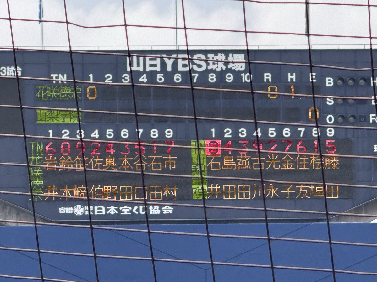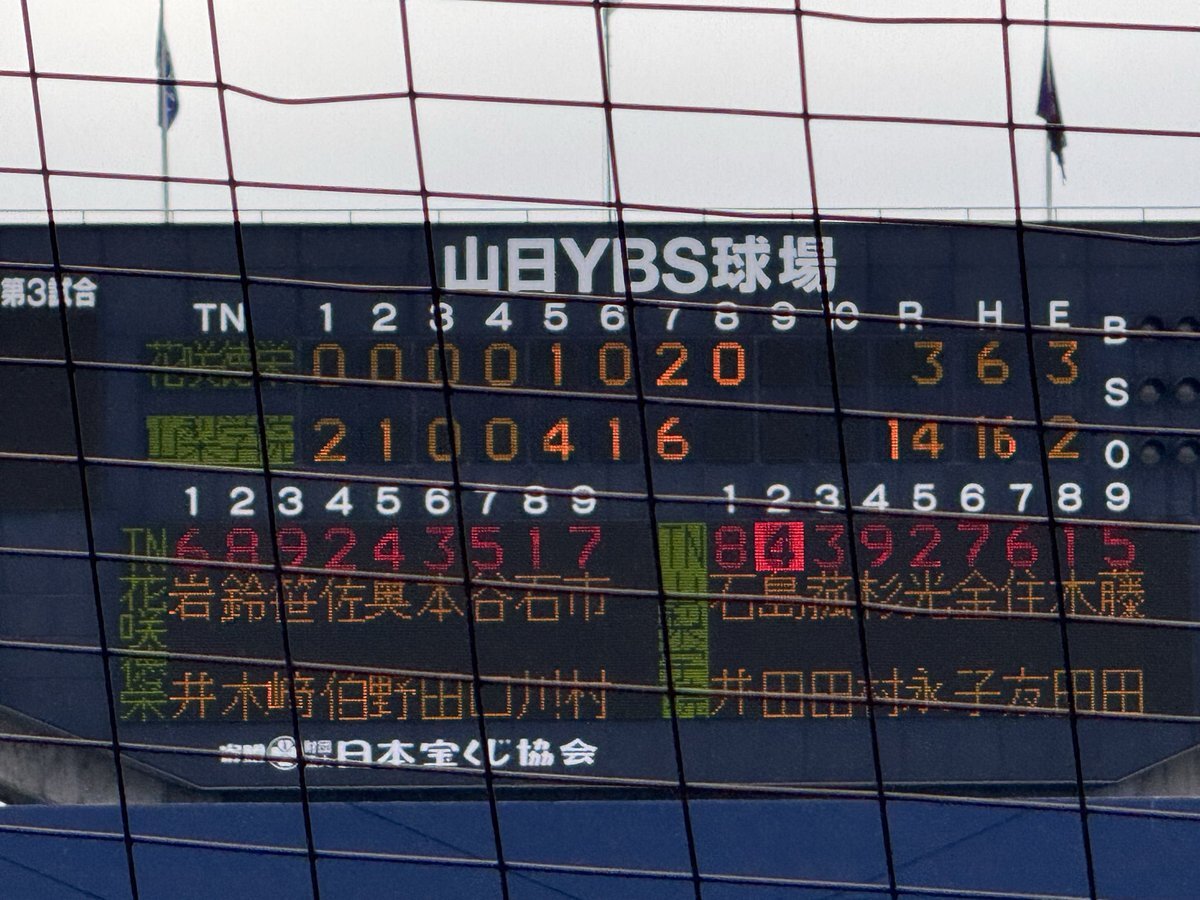 #第78回秋季関東高校野球大会 ○山日YBS球場 【決勝】 6回表終了 山梨学院(山梨1位)7ー1花咲徳栄(埼玉1位) 反撃したい花咲徳栄は二死二塁とするも無得点 #高校野球 #関東大会 pic.x.com/Nwc4FdOmhx