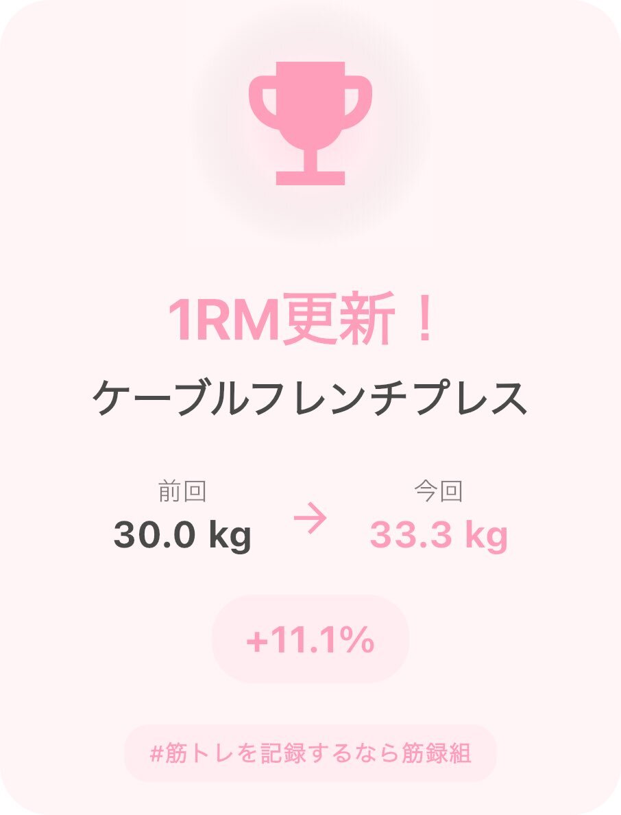 初めてやってみたよ 筋トレたのしー💪 ケーブルフレンチプレスで新記録達成! 30.0kg → 33.3kg #筋トレを記録するなら筋録組 #筋録組 kinrokugumi.com/?ac pic.x.com/dmhTz61VRV