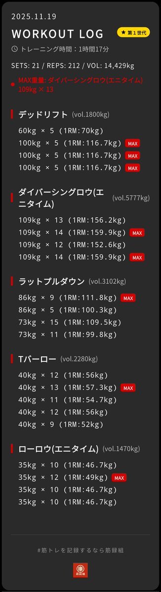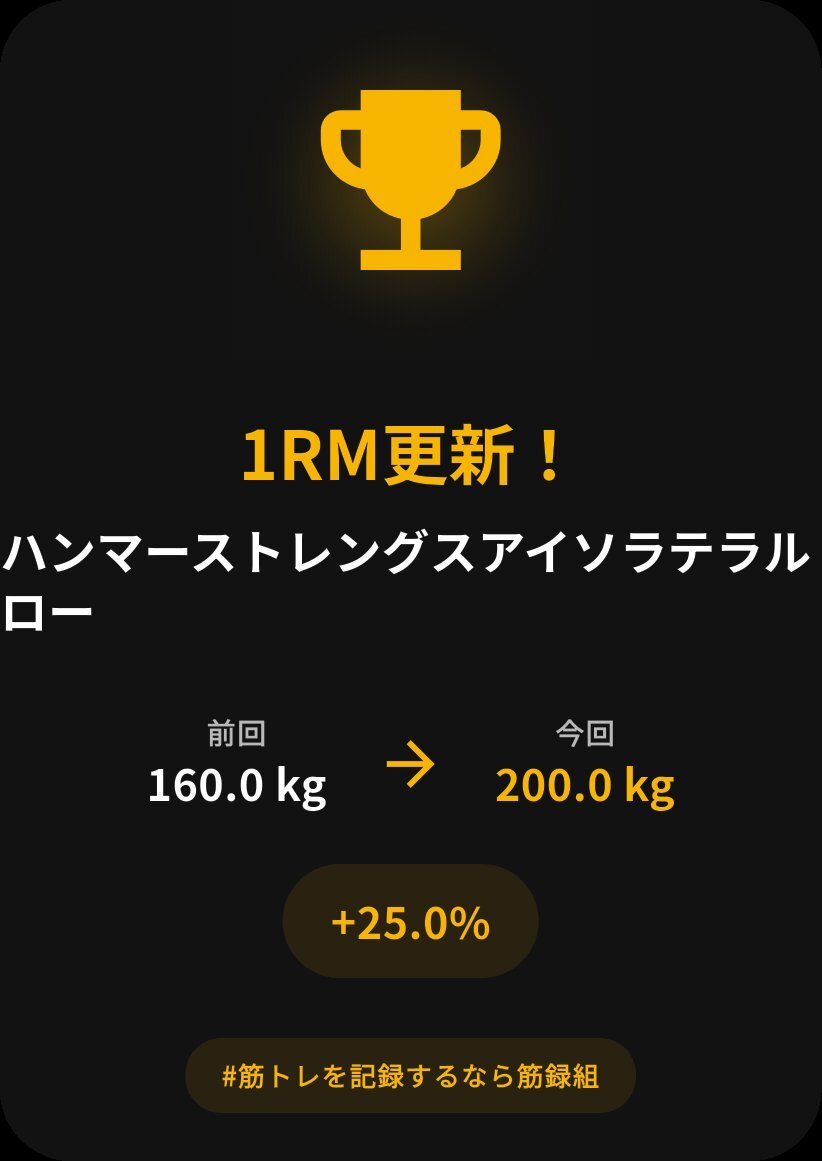 ハンマーストレングスアイソラテラルローで新記録達成! 160.0kg → 200.0kg #筋トレを記録するなら筋録組 #筋録組 kinrokugumi.com/?ac pic.x.com/VleiLq6Csf