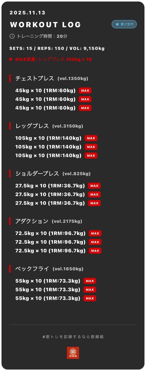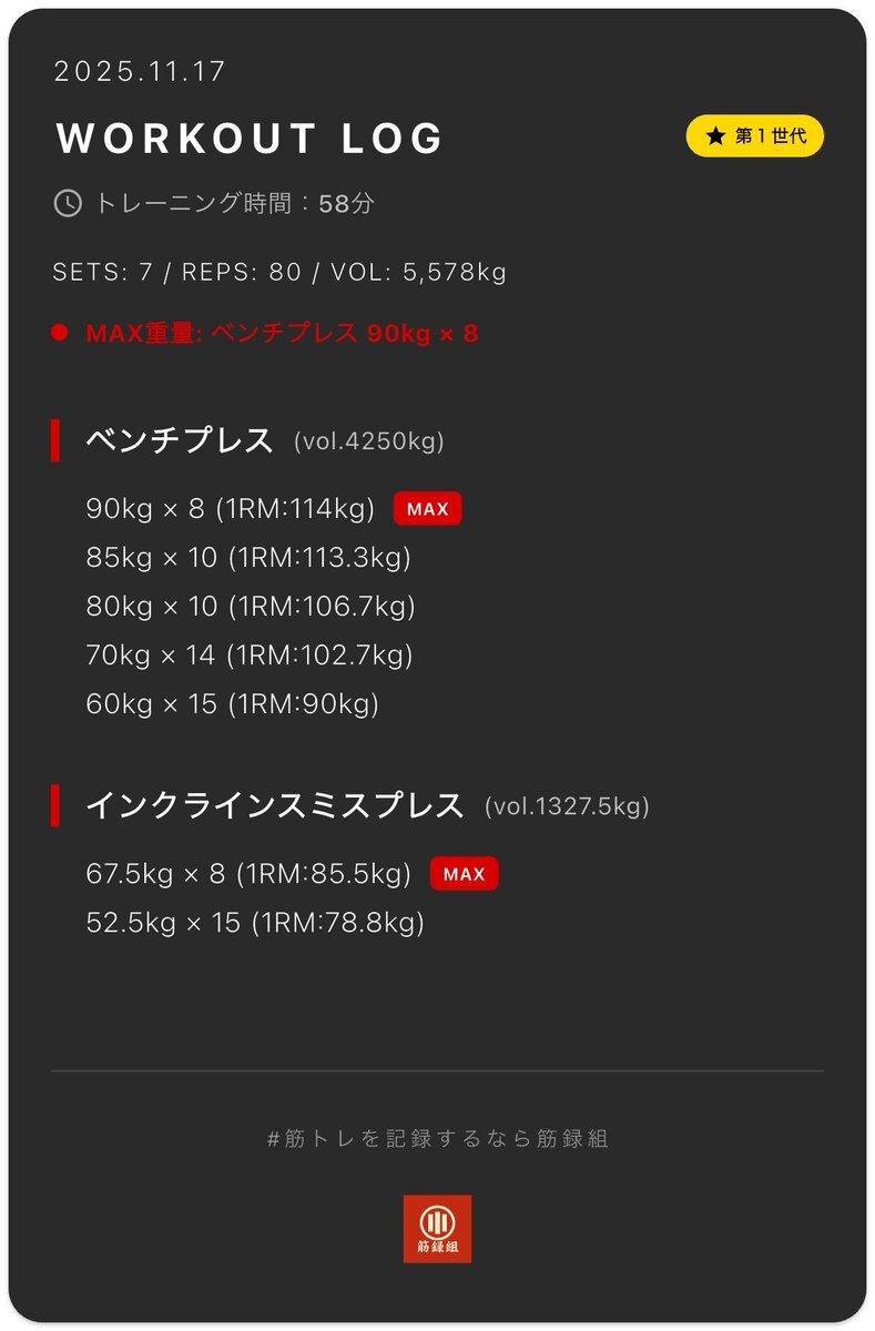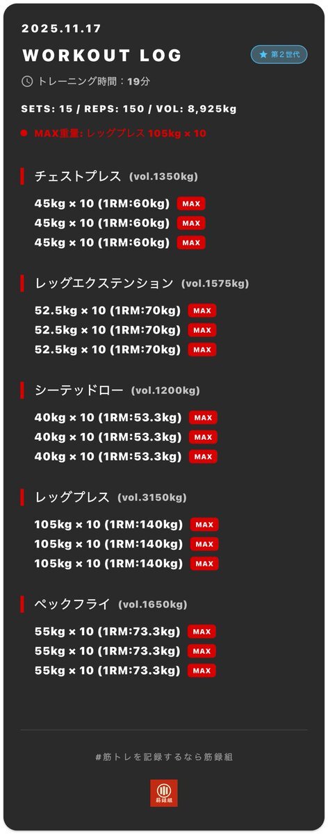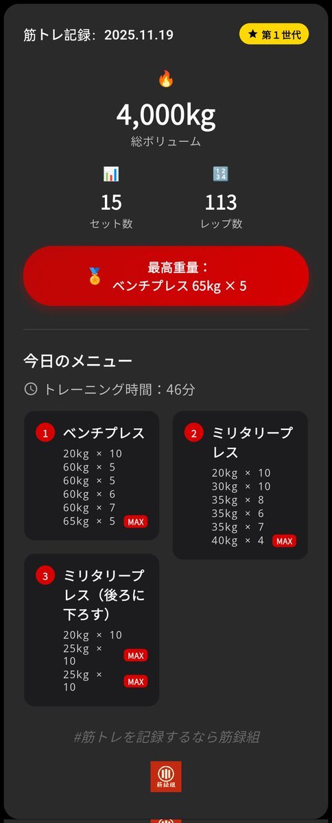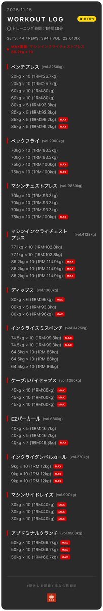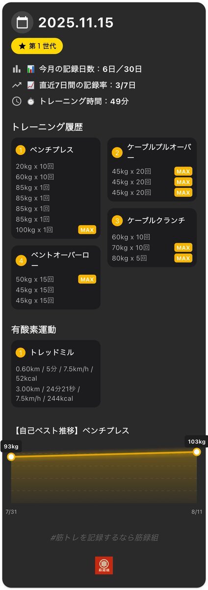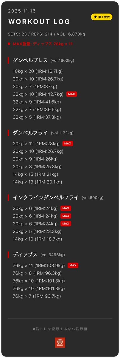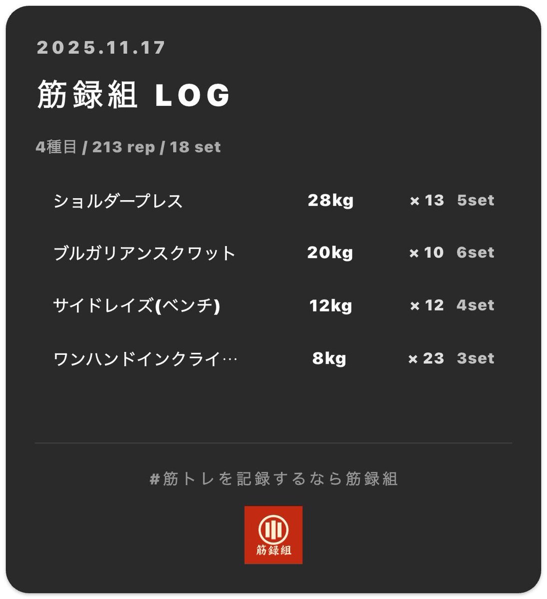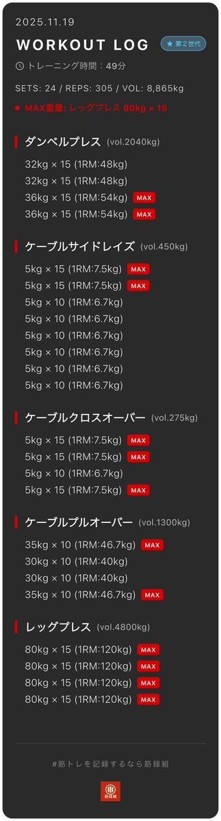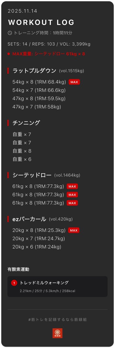 #筋トレを記録するなら筋録組 #筋録組 kinrokugumi.com/?dm 今日は開始が遅くなったので、ケーブルはやめた。 仕事忙しかったし、まぁしゃーなし。 pic.x.com/emEKkchmjt