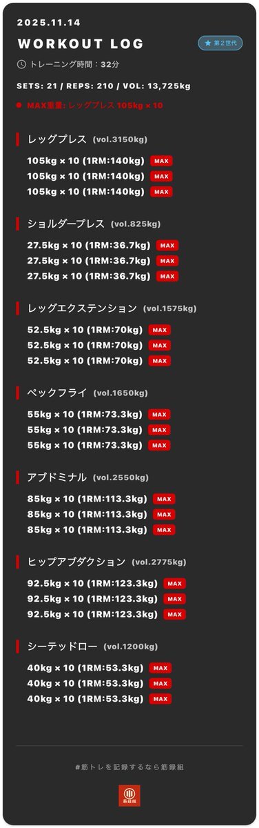 上半身だけデカくて 脚だけ貧弱な身体には なりたくない一心で脚トレだけは ちゃんとやってます🔥 #筋トレを記録するなら筋録組 #筋録組 kinrokugumi.com/?wr pic.x.com/Mupvghq3vR
