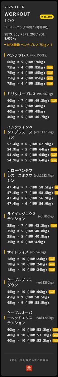 ミリタリーな日🏋️ ベンチプレス以外は扱える重量少しずつ増えていってます🏋️ #筋トレ報告 #朝トレ #筋トレを記録するなら筋録組 #筋録組 kinrokugumi.com/?ds pic.x.com/ZEkyijvPEz