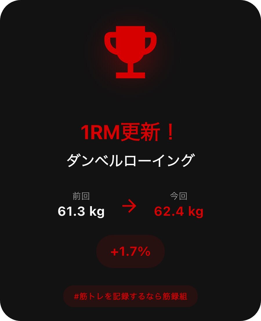 ダンベルローイングで新記録達成! 61.3kg → 62.4kg #筋トレを記録するなら筋録組 #筋録組 kinrokugumi.com/?ac ダンベル48kgともなると、さすがにスムーズに回数はこなせなくなってきたな… pic.x.com/L7wfpqsKeB