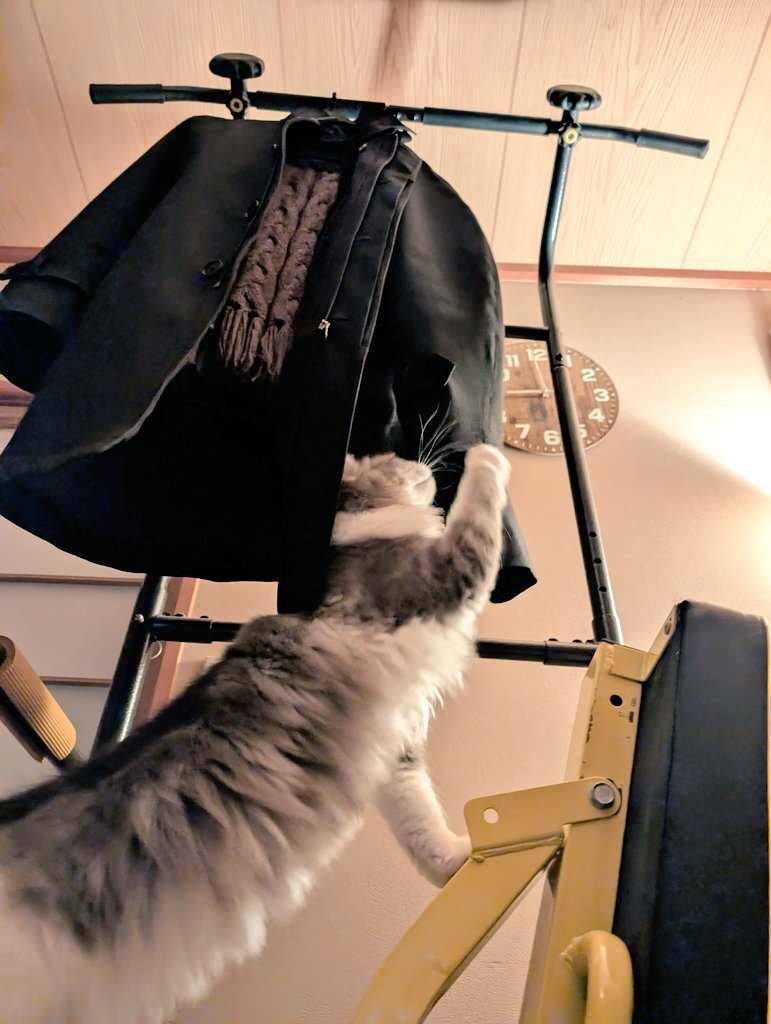 おいとーちゃん これコートかけるやつじゃないってまえにもいったべ?けんすいやれよな #筋トレ垢さんと繋がりたい #猫好きさんと繋がりたい pic.x.com/YEHmZE3UvR