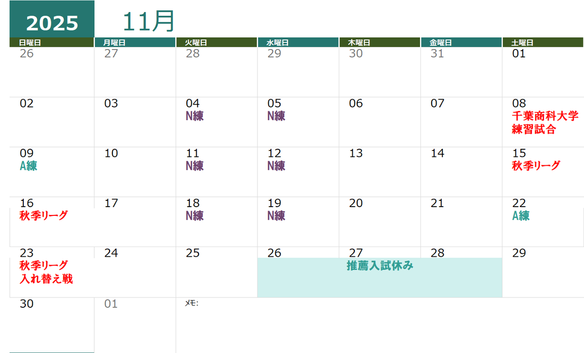 こちら11月の練習日程になります! いよいよ秋季リーグ戦が目前となりました。部員一同よりいっそう気合を入れて練習に励んでいきます! OB、OGの皆様、引き続きご指導ご鞭撻のほどよろしくお願いします。 #筑波大学 #筑波大学軟式庭球部 #つくなん pic.x.com/PhrJEvlTcw