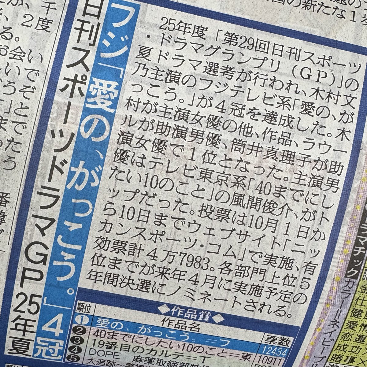 ‖✎𓂃 愛の、がっこう。 ‖ 第29回日刊スポーツ・ドラマグランプリ 2025年夏ドラマ 4冠、受賞しました💐 ・木村文乃さん 主演女優賞 ・ラウールさん 助演男優賞 ・筒井真理子さん 助演女優賞 ・作品賞 たくさんの愛を ありがとうございました♡ #愛のがっこう は FOD・Netflixで全話配信中です。