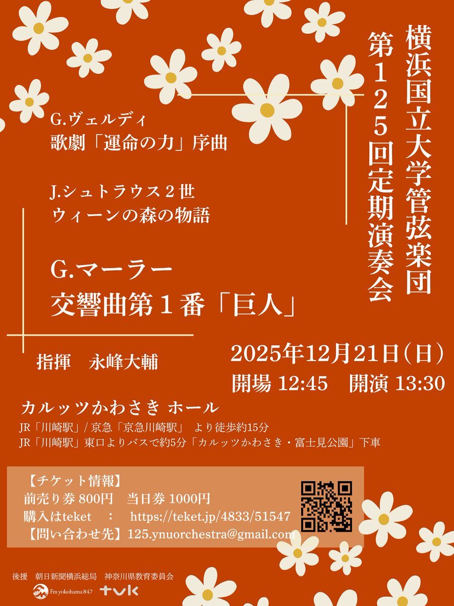 【第125回定期演奏会 ポスター公開】 こんにちは!横国オケです🎻 本日より第125回定期演奏会のポスターを公開いたします! あわせて、前売り券の販売も開始いたします。 下記または、プロフィールのリンクよりご確認ください! teket.jp/4833/51547