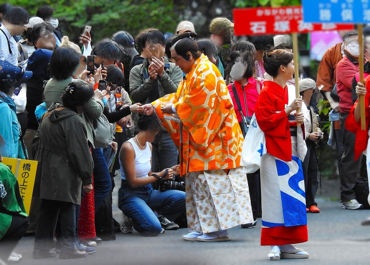 箱根大名行列のメインゲストは石塚英彦さん。(食べ物ないけど🤣)まいう〜って、サービス精神いっぱいで、記念撮影にも丁寧に対応されていました。かながわ観光親善大使なんですね。長時間の歩き、お疲れ様でした! #箱根大名行列 pic.x.com/e2Le35hbJL