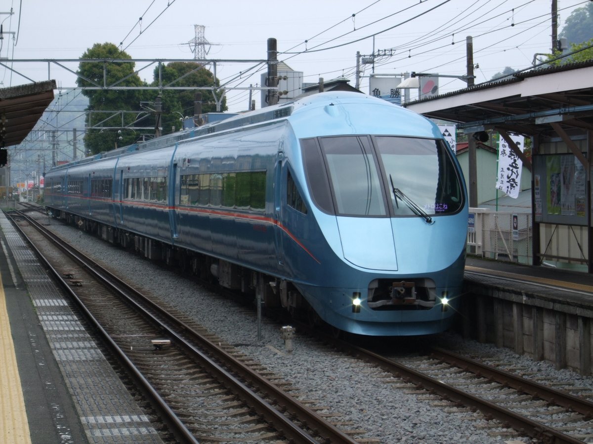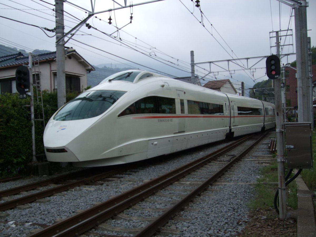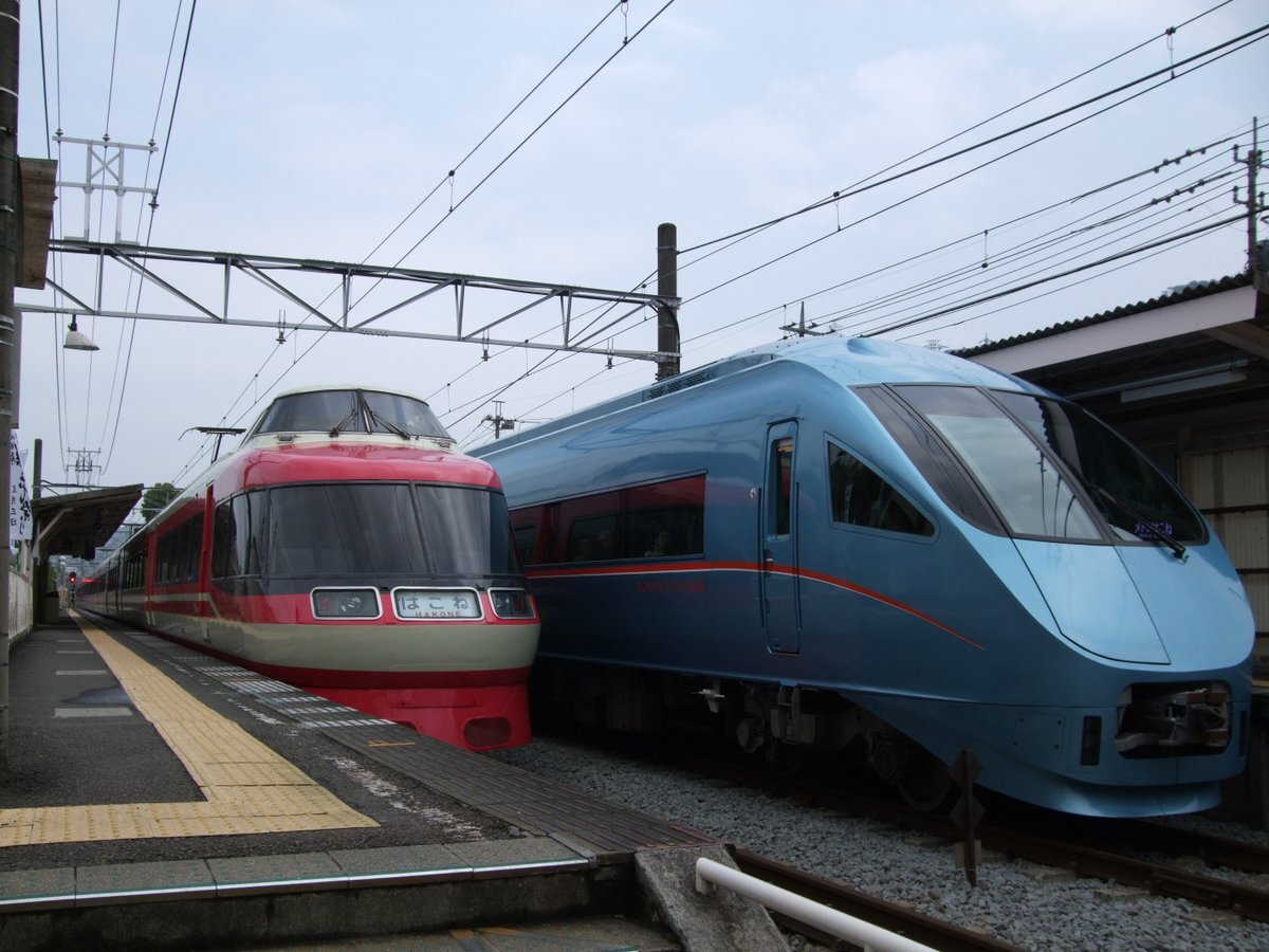 「我が家に眠るちょっと懐かしの鉄道写真シリーズ」 箱根登山線入生田駅で交換する60000形MSE「メトロはこね」と7000形LSE「はこね」 @入生田駅2008.4.27 #箱根登山線 #小田急 #はこね #メトロはこね #MSE #LSE #小田急7000形 #小田急60000形