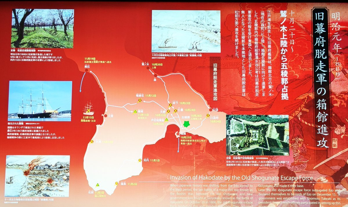 157年前の1868(明治元)年10月20日(新暦12月3日)は、#榎本武揚#土方歳三 ら旧幕府脱走軍が鷲ノ木(現在の森町)に到着、上陸した日🚢 ここから #五稜郭 を目指しました🌟 上陸時の鷲ノ木は、積雪約30cm、北西の強風で波は荒れ(タバ風)、暴風雪であったと伝わります。 #箱館奉行所 #箱館戦争 pic.x.com/2Aip8aJkkj