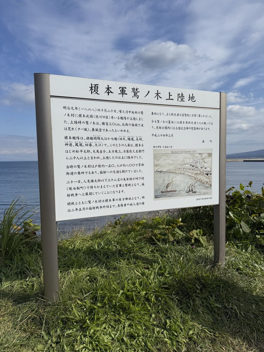 北海道茅部郡森町鷲ノ木 1868年(明治元年)10月20日榎本軍上陸地 五稜郭☆と土方歳三最期の地碑 以外はすべてお初です😅 #箱館奉行所 #箱館戦争 #榎本武揚 pic.x.com/aPGmAl0b87